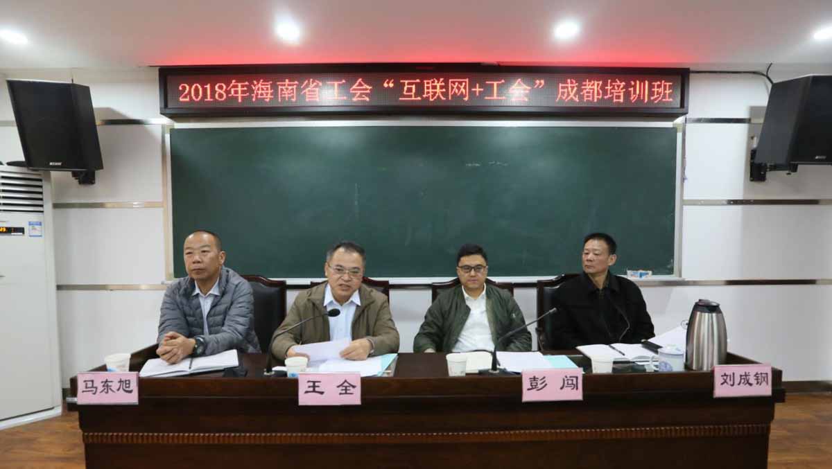 12月3至7日,海南省总工会在四川省总工会干部学校举办全省工会系统“互联网+工会”培训班。省总工会党组书记、常务副主席王全出席开班仪式并作开班动员讲话。省总工会党组成员、副主席马东旭,四川省总工会党组成员、副主席彭闯出席开班仪式。