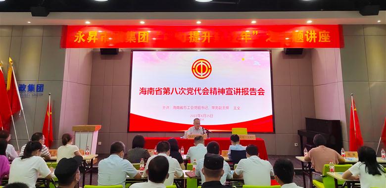| 为深入学习贯彻习近平总书记考察海南重要讲话精神和省第八次党代会精神,进一步推动全省各级工会干部和职工群众统一思想,兴起学习宣传贯彻落实省第八次党代会精神热潮,解放思想、开拓创新,团结奋斗、攻坚克难,在加快建设具有世界影响力的中国特色自由贸易港中争做贡献,按照省委的统一部署,结合开展“能力提升建设年”和深化拓展“查堵点、破难题、促发展”活动,6月15日下午,省总工会党组书记、常务副主席王全在陵水县海南永昇市政集团有限公司为工会干部和职工代表宣讲省... |