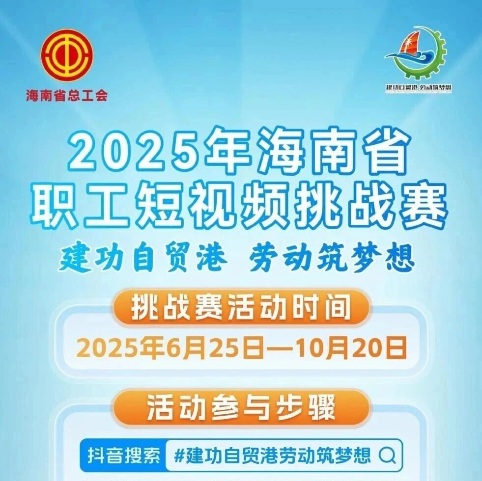 | 十月的海南,金风送爽,正是收获与奋进交织的美好时节!海南省总工会“建功自贸港劳动筑梦想”职工短视频挑战赛持续进行中,十月特别话题——#建功自贸港金秋共进时正式开启!这是一个属于团队的高光时刻,是记录集体拼搏、协作共进的绝佳舞台。不论你是一线班组、项目团队,还是部门协作、跨单位联合,只要你愿意展现团队的力量、书写劳动的荣光,你就是我们要寻找的“自贸港建设最佳拍档”!创作方向建议:记录团队攻坚克难的高燃场景,展现跨岗位、跨工种协同作战的精彩瞬间;... |