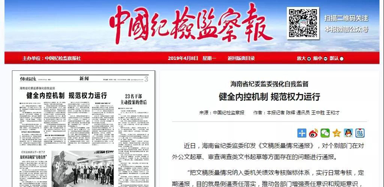 强化自我监督,海南省纪委监委从这三方面着手 |