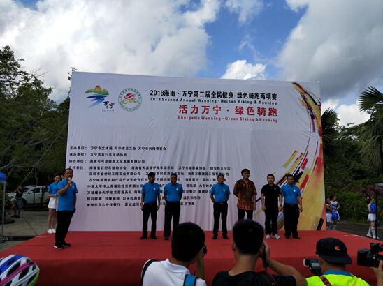 8月5日,由万宁市总工会、万宁市文体局和兴隆管委会主办,万宁市自行车运动协会承办的2018海南万宁第二届全面健身-绿色骑跑两项赛在万宁兴隆国家绿道拉开序幕。市委常委、宣传部部长杨志斌出席活动并宣布大赛正式开始。