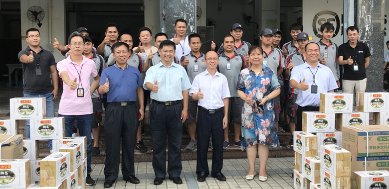 2020年入夏以来,海南地区迎来连日高温天气,酷暑难当。7月30日,省总工会一级巡视员、省教科文卫邮电工会主席郑有基,省邮政管理局党组书记、局长丰圣少,省教科文卫邮电工会常务副主席吕亚平,省邮政管理局机关工会主席殷雨一行到顺丰速运(夏瑶花苑网点)开展“送清凉”慰问活动。