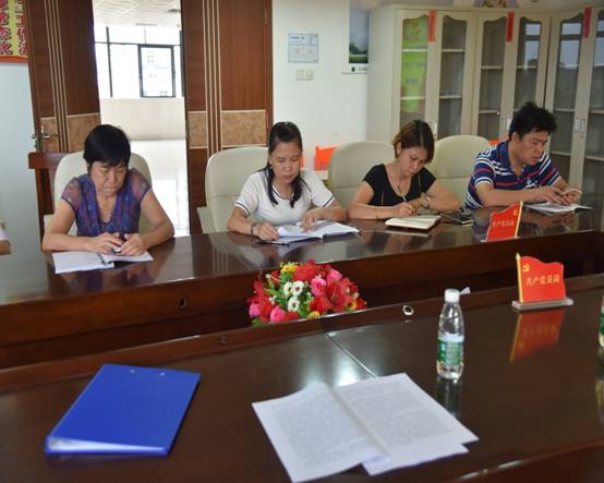 杨丽娜杨党总支组织委员(左二)传达学习