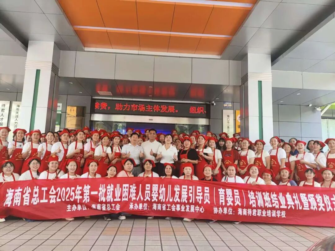 9月20日,由海南省总工会主办、省工会事业发展中心承办、海南待君职业培训学校协办的2025年第一批就业困难人员育婴员培训班在海口顺利结业。省工会事业发展中心相关负责人、培训机构负责人、教师代表以及150多名参训学员参加了结业仪式。
