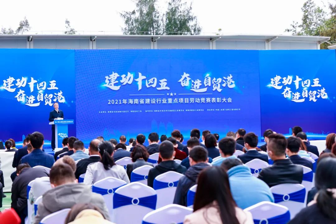 2月25日下午,省总工会、省住建厅在中建二局三公司江东新区CBD起步区中银国际金融中心项目工地举行2021年海南省建设行业重点项目劳动竞赛表彰大会,总结竞赛成果,表彰了中建二局第三建筑工程有限公司(中银国际金融中心项目)等12个先进集体和中国建筑第五工程局有限公司海南分公司目经理王凤涛等30名先进个人,省人大常委副主任、省总工会主席陆志远出席表彰大会并讲话。