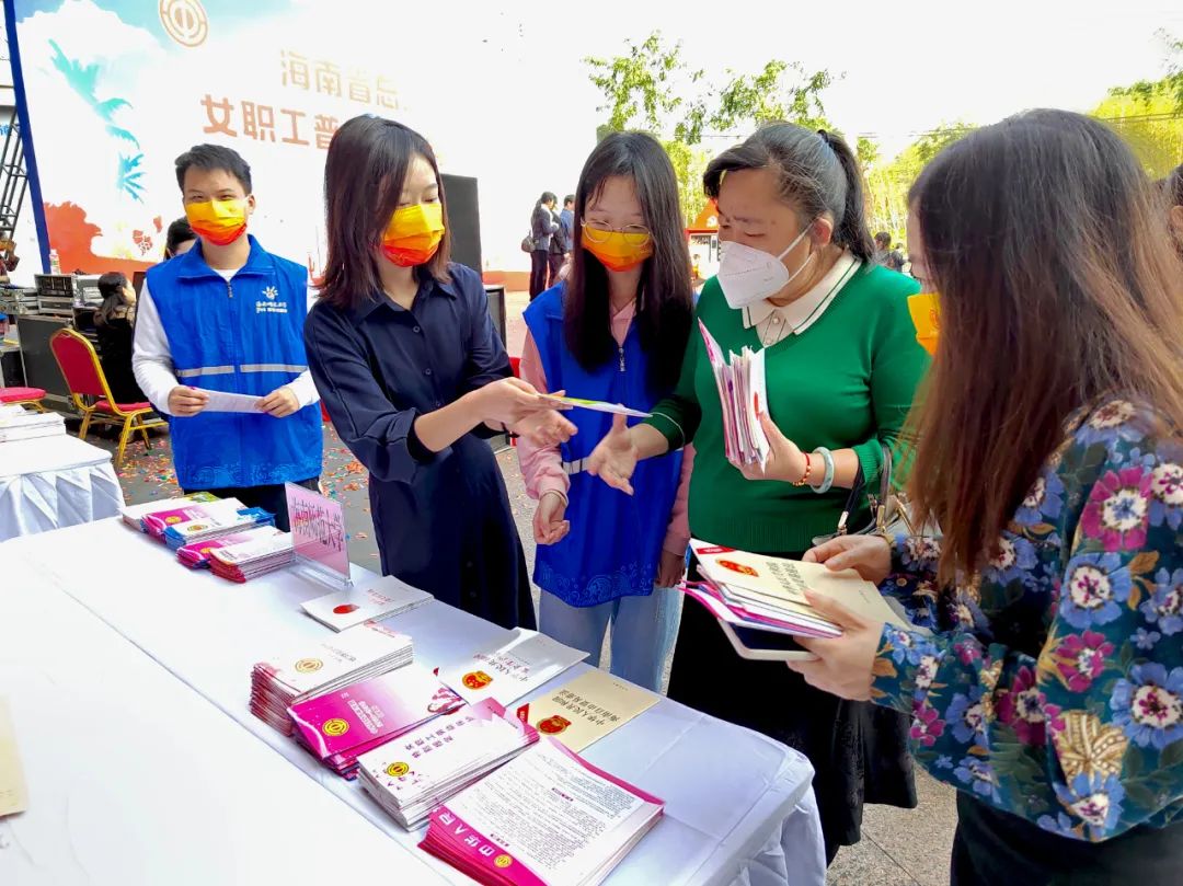 活动现场,省总工会通过设置法律咨询服务台安排法律服务律师团专业律师为女职工朋友们提供法律宣传咨询等服务,讲解女职工相关权益知识。海南大学和海南师范大学组织志愿者们向前来咨询的女职工分发了《工会法》《女职工劳动保护特殊规定》和新修订的《中华人民共和国妇女权益保障法》以及《海南省总工会医疗互助服务指南》《海南省总工会女职工安康互助活动服务指南》等宣传资料2600余份。同时,现场还开展了法律法规知识有奖答题环节,进一步活跃现场气氛,提高女职工朋友的参与度,引导广大女职工尊法学法守法用法,增强维权意识,提升了女职工权益保护相关法律法规知识的知晓率和普及率。
