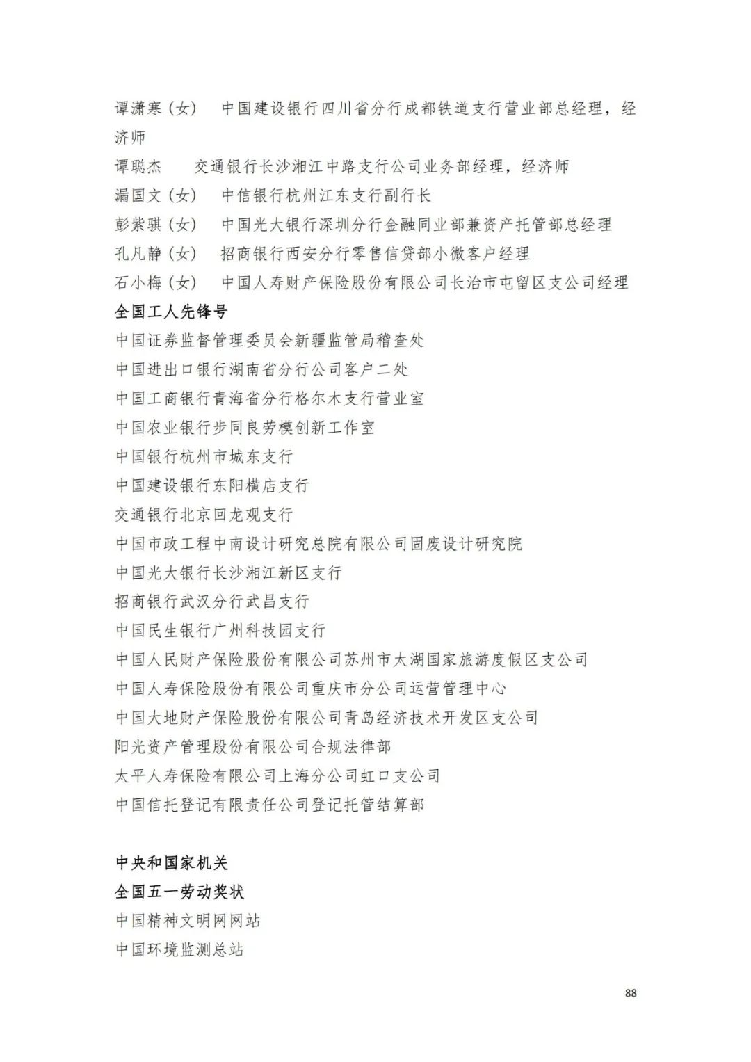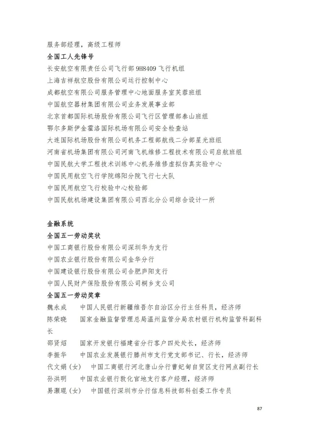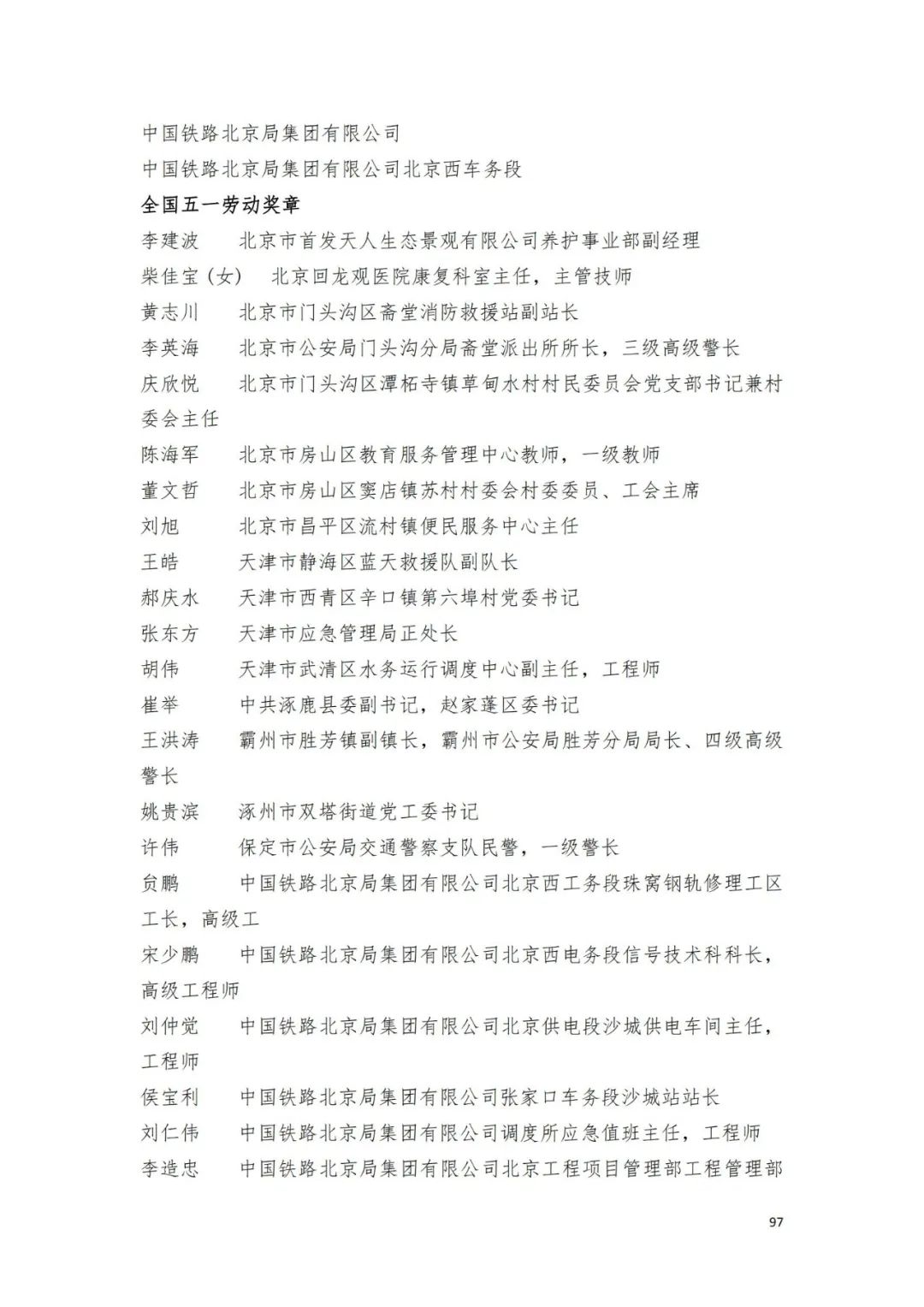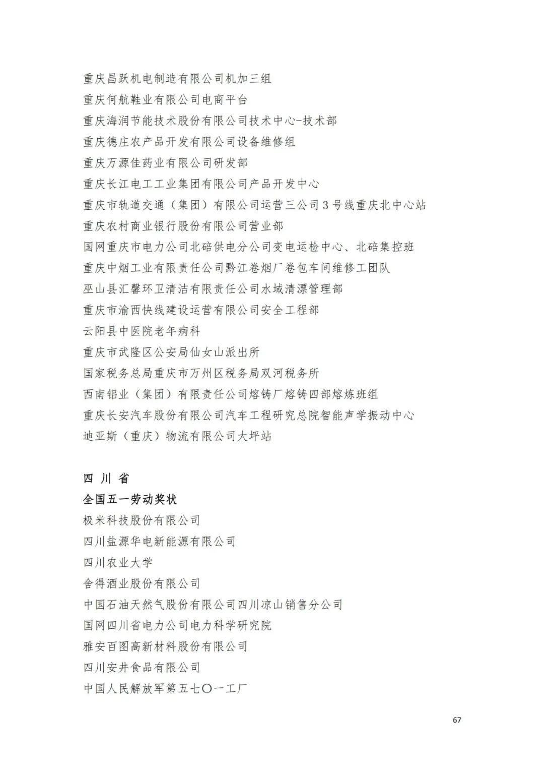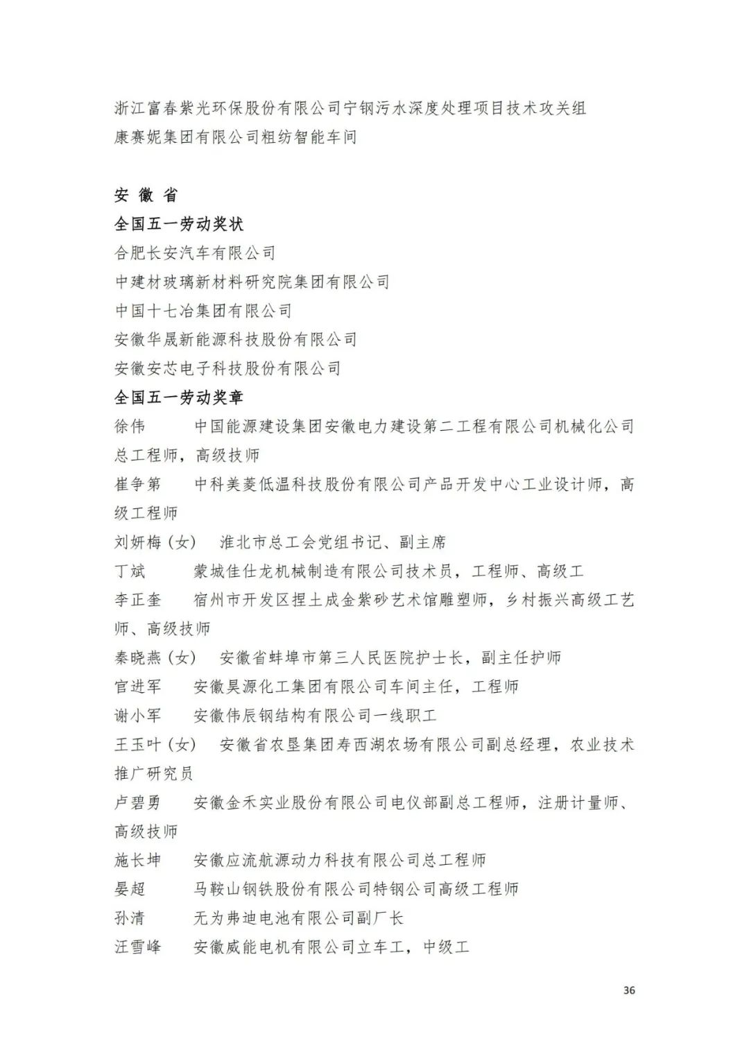 为表彰先进、树立典型,大力弘扬劳模精神、劳动精神、工匠精神,激励广大职工积极投身中国式现代化建设,中华全国总工会决定,授予北京天科合达半导体股份有限公司等255个单位全国五一劳动奖状,授予郝利斌等1088名职工全国五一劳动奖章,授予北汽福田汽车股份有限公司工程研究总院轻卡技术中心等1034个集体全国工人先锋号。希望受到表彰的集体和个人珍惜荣誉、再接再厉,发挥模范带头作用,在新征程上不断展现新作为、创造新业绩。