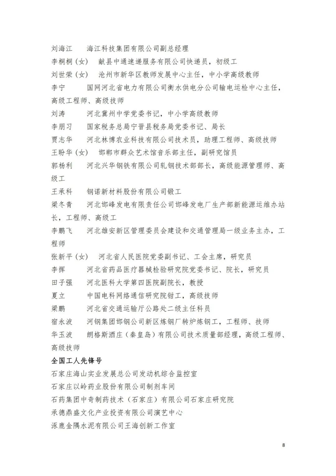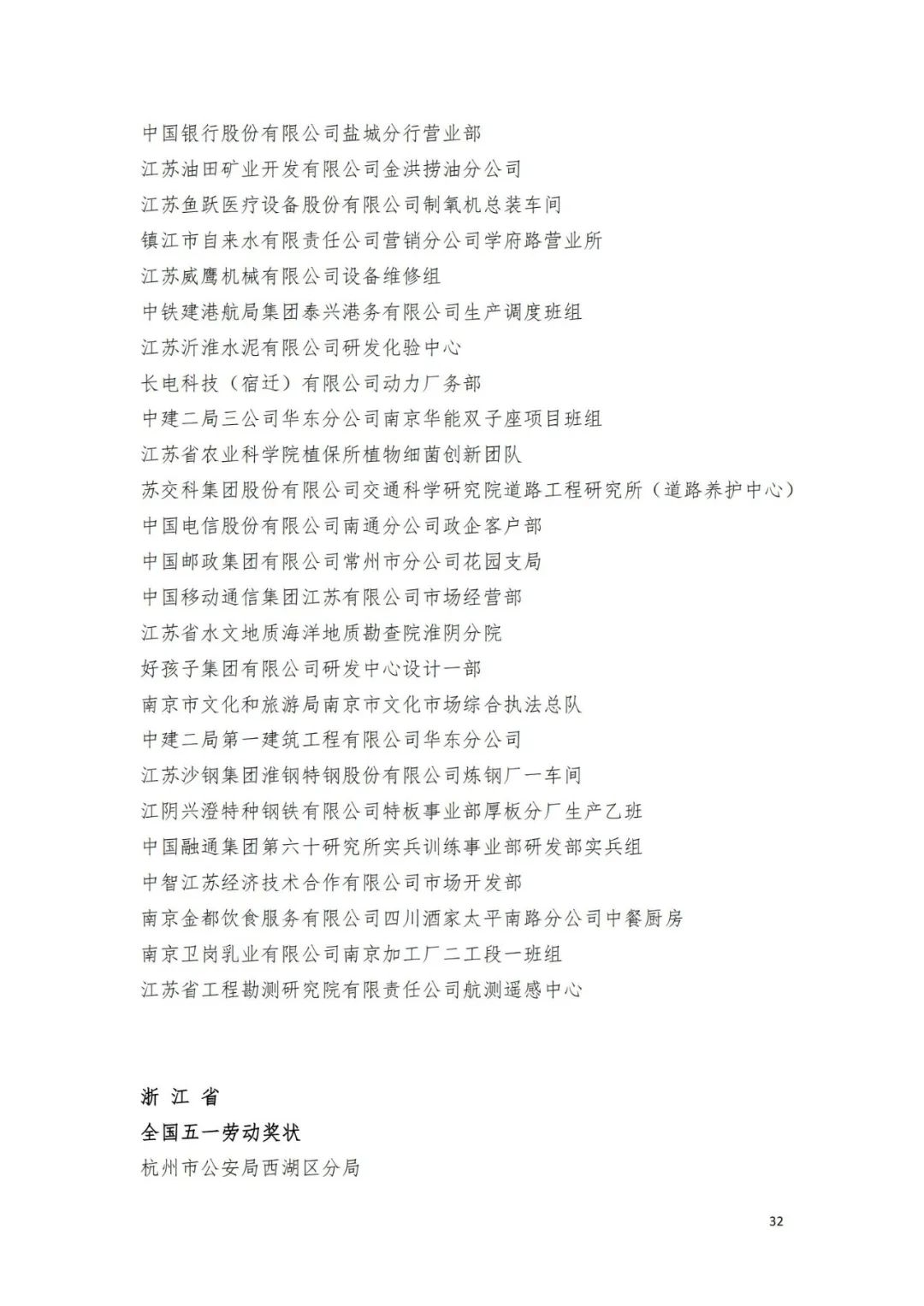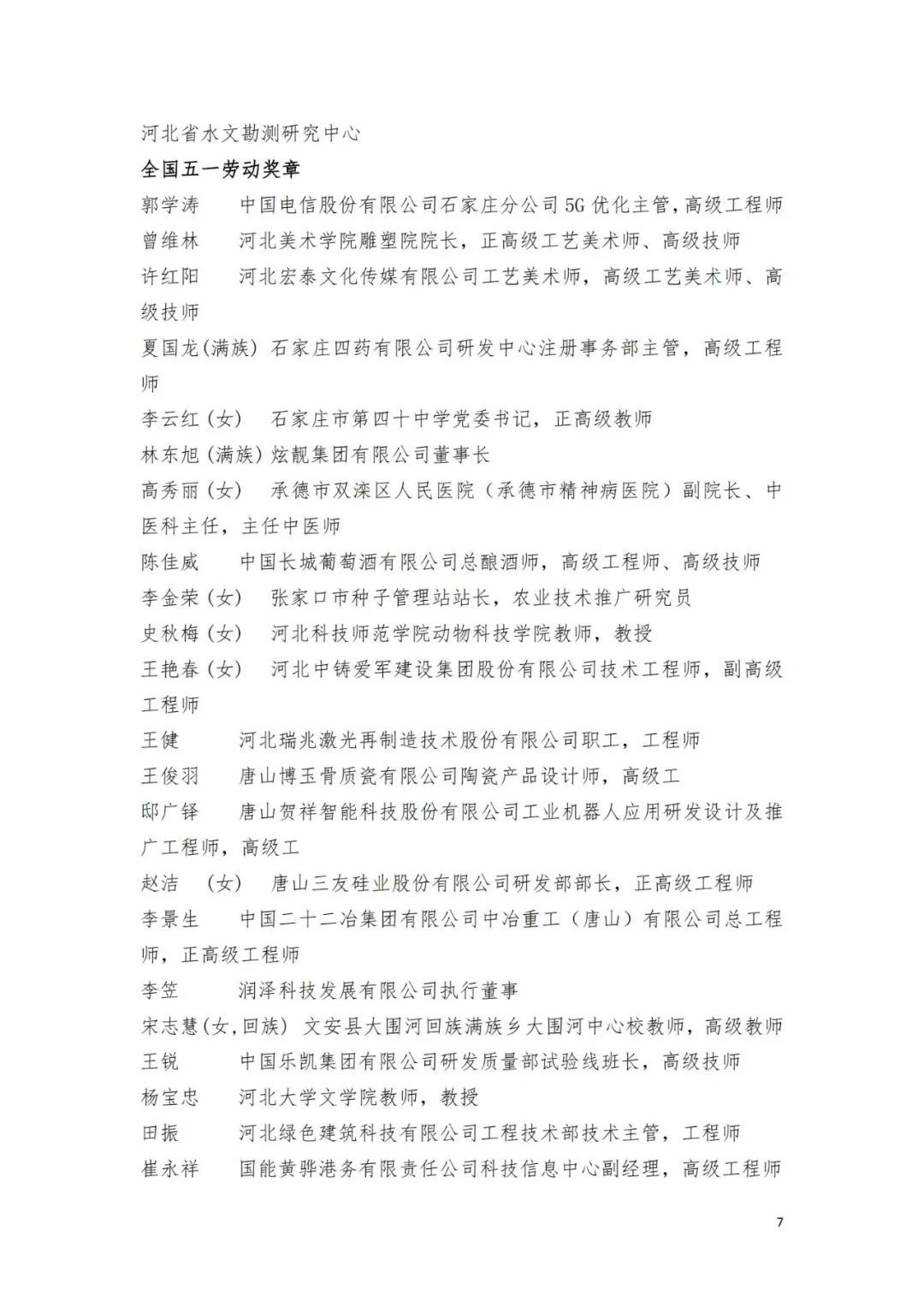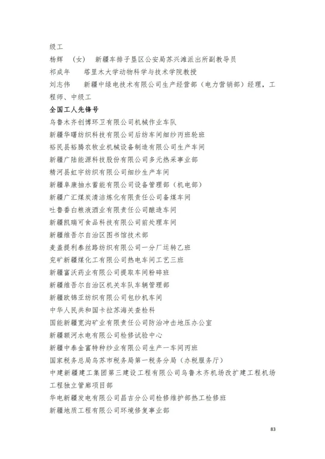 为表彰先进、树立典型,大力弘扬劳模精神、劳动精神、工匠精神,激励广大职工积极投身中国式现代化建设,中华全国总工会决定,授予北京天科合达半导体股份有限公司等255个单位全国五一劳动奖状,授予郝利斌等1088名职工全国五一劳动奖章,授予北汽福田汽车股份有限公司工程研究总院轻卡技术中心等1034个集体全国工人先锋号。希望受到表彰的集体和个人珍惜荣誉、再接再厉,发挥模范带头作用,在新征程上不断展现新作为、创造新业绩。