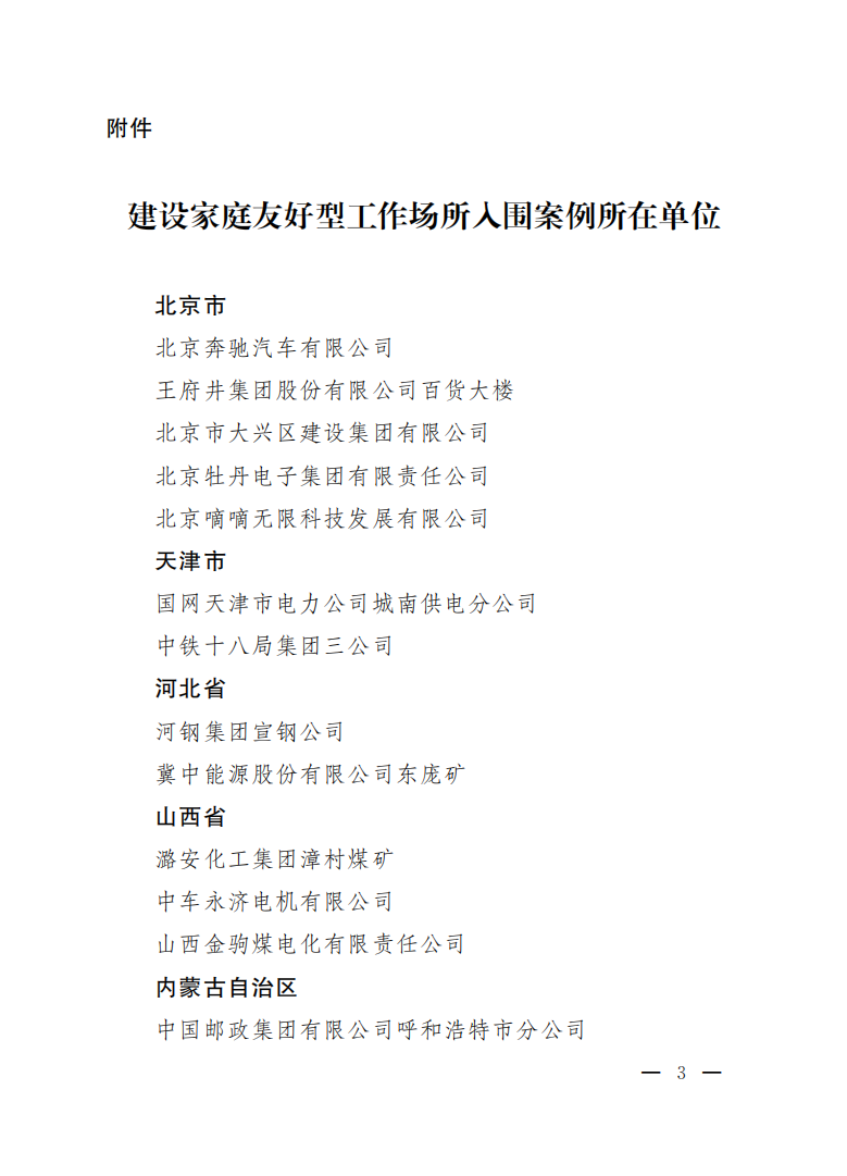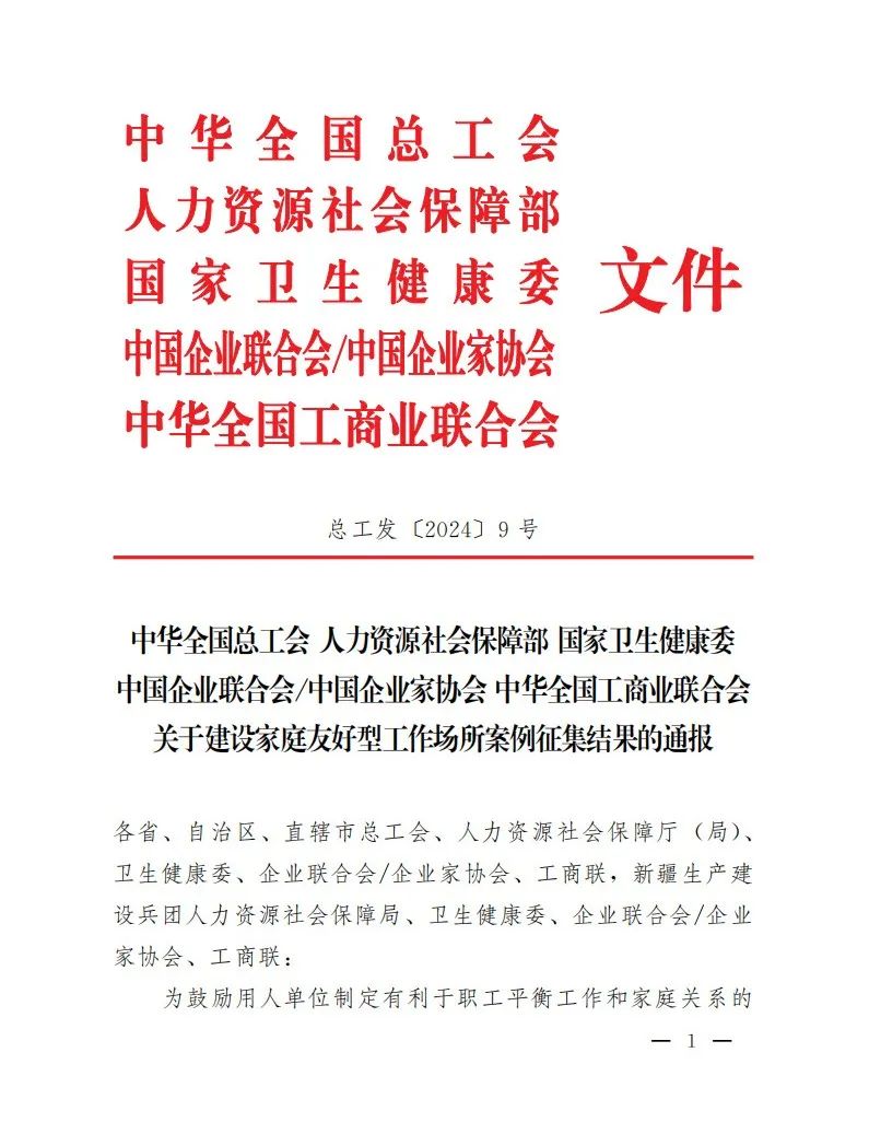 为鼓励用人单位制定有利于职工平衡工作和家庭关系的措施,帮助职工平衡工作和家庭责任,推动建设家庭友好型工作场所,促进工作场所性别平等,构建和谐稳定的劳动关系,近日,中华全国总工会、人力资源社会保障部、国家卫生健康委、中国企业联合会/中国企业家协会、中华全国工商业联合会联合下发《关于建设家庭友好型工作场所案例征集结果的通报》。