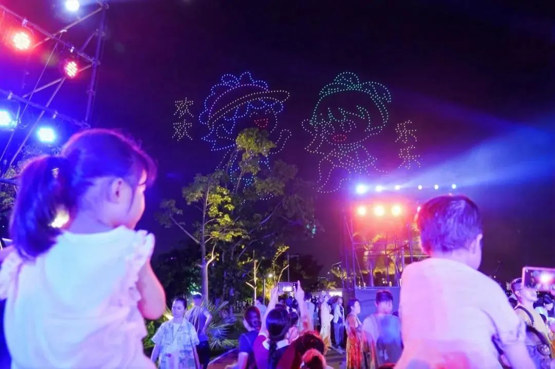 水上,法国籍女高音歌唱家身着巨大伞状发光礼服,优雅漂浮于水面,演唱世界名曲;空中,无人机编队灵动变幻,组成各式欢乐图案,点亮海口夜空;地面,儿童戏剧嘉年华、丛林电音派对、欢乐“Sea Walk”主题巡游等活动,让各年龄层的市民游客各得其乐。