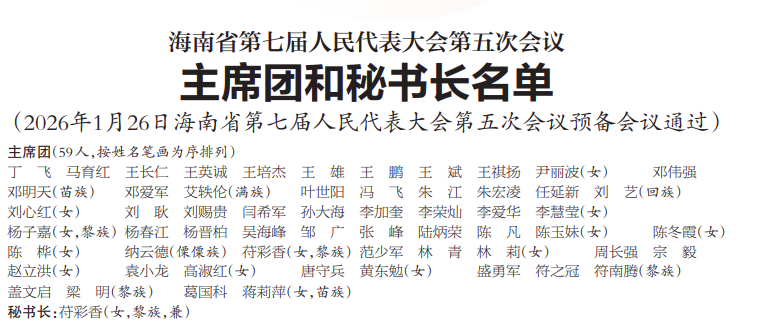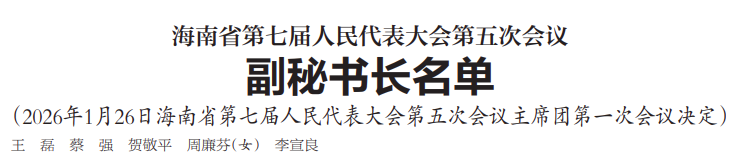 海南省第七届人民代表大会第五次会议将于1月27日至31日在海口举行。大会将于27日上午9时在省人大会堂隆重开幕。