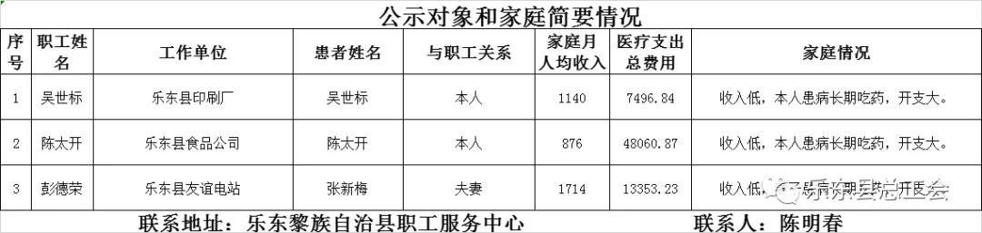 乐东黎族自治县职工服务中心2020年医疗救助名单公示