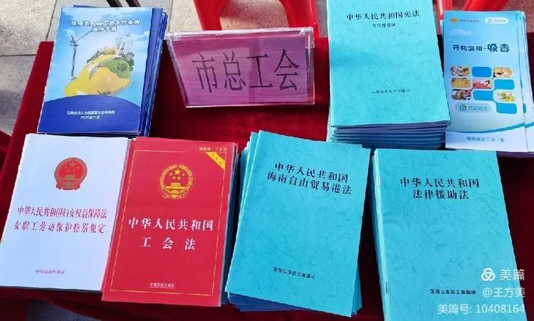 活动现场,五指山市总工会采取悬挂横幅标语、现场讲解等形式,为前来咨询的妇女职工详细地答疑解惑,共发放《妇女权益保障法》《女职工劳动保护特别规定》《工会法》《海南自由贸易港法》《民法典》《宪法》《法律援助法》等维护女职工相关法律法规及禁毒宣传资料200余份。