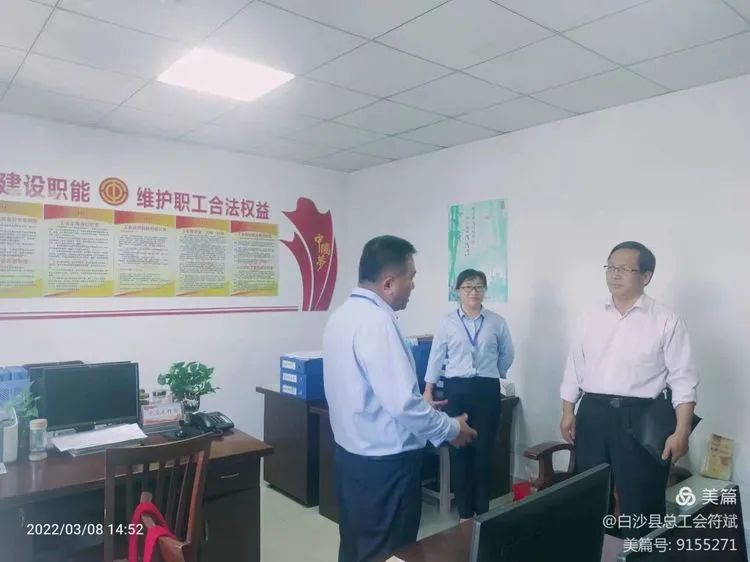白沙县人大常委会副主任、县总工会主席符秀琼,白沙县总工会领导班子成员陪同调研。