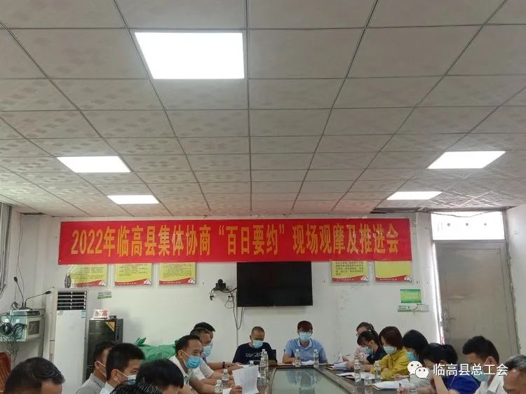 为进一步推动集体协商工作,实现劳资互利共赢,促进临高县经济高质量发展和社会稳定。 依据《工会法》等有关规定和省总〔2022〕7号文件精神,结合临高县实际制定的《临高县总工会开展集体协商“百日要约行动”实施方案》总体要求,临高县总工会联合县人社局、县工商联于2022年6月1日上午在临高县总工会会议室召开2022年集体协商“百日要约”现场观摩及推进会。