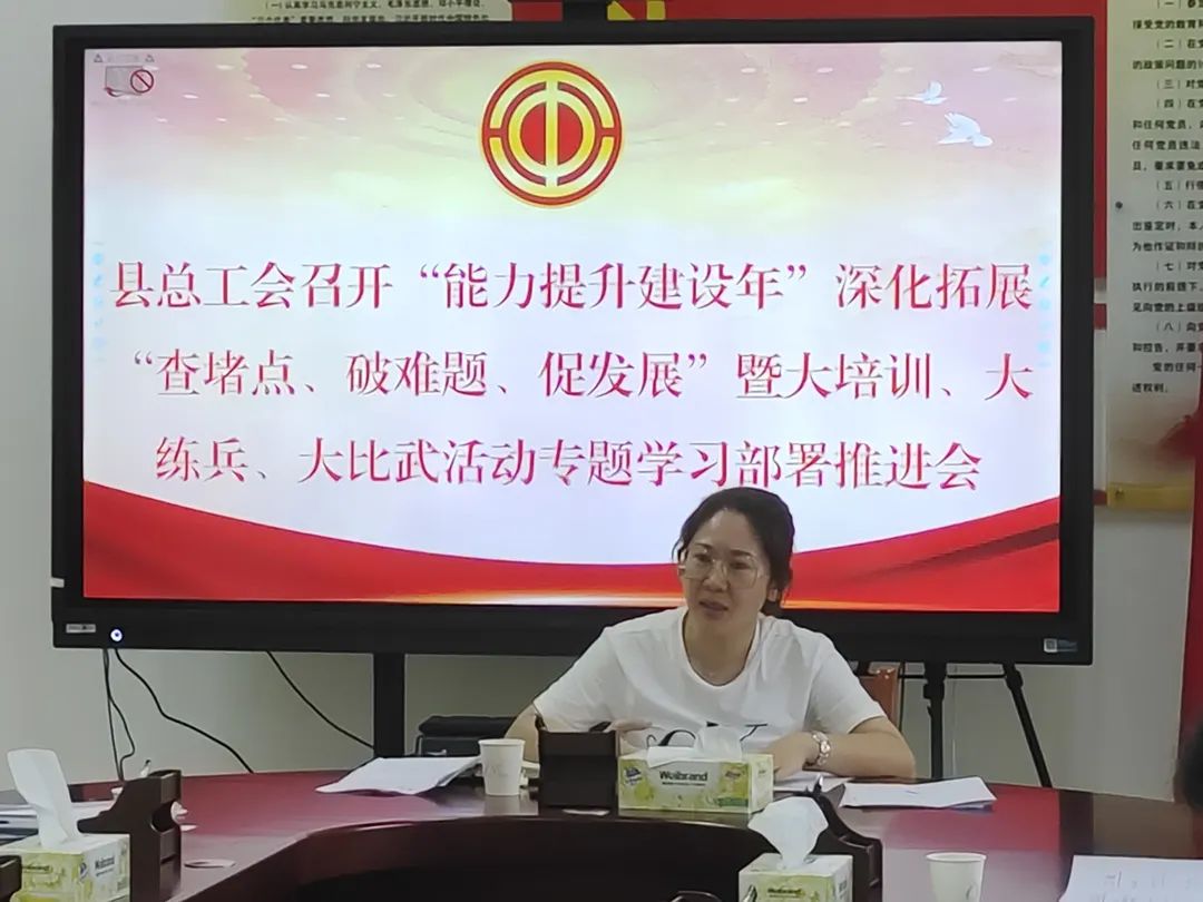 会议传达学习《关于做好专业化大练兵“学”“改”工作的通知》、《关于深化拓展“查堵点、破难点、促发展”活动实施方案》等文件精神,陵水县总工会副主席邹小敏解读陵水县总工会“能力提升建设年”暨深化拓展“查堵点、破难题、促发展”活动实施方案和大培训、大练兵、大比武活动的实施方案。梳理活动开展以来所做的主要工作和存在的问题及下一步打算,进一步压实工作责任。