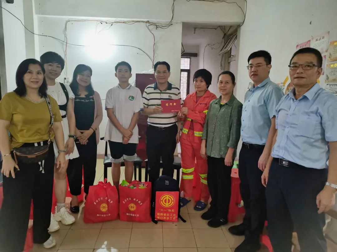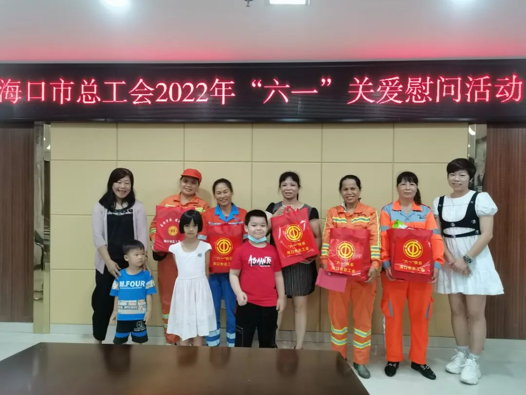 当天,海口市总工会慰问了8名城市在档困难单亲女职工子女,转拨省总工会1000元/人的专项慰问金,并为孩子们送去牛奶和儿童食品等节日慰问品。