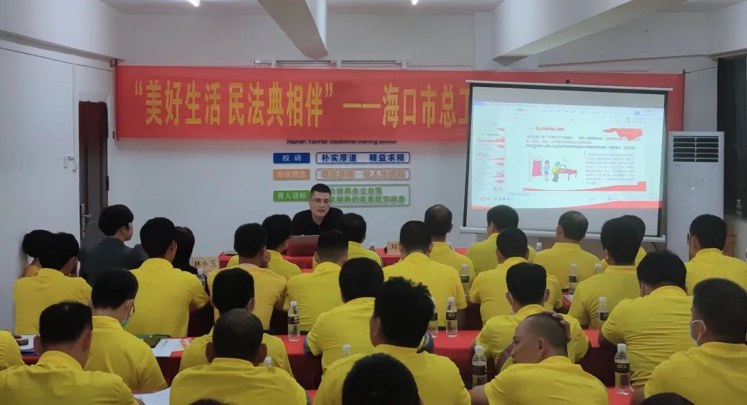 为推进民法典学习宣传常态化,让民法典走到职工群众身边、走进职工群众心里,提高广大职工群众对民法典的认识了解。5月26日,海口市总工会在海南省燕海职业培训学校开展“美好生活 民法典相伴”——《民法典》专题讲座,海口市总工会党组成员、副主席林小玉出席讲座,讲座由海口市总权益保障部部长覃湘主持,邀请江苏彭隆(琼海)律师事务所执行主任刘怀授课,现场近百名职工参加。