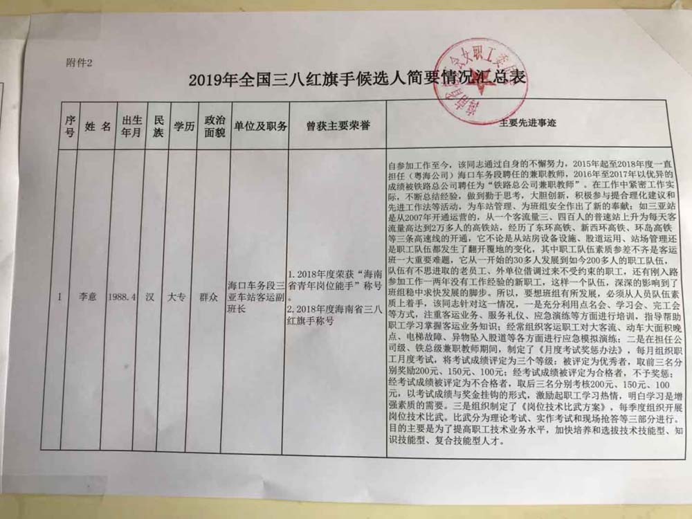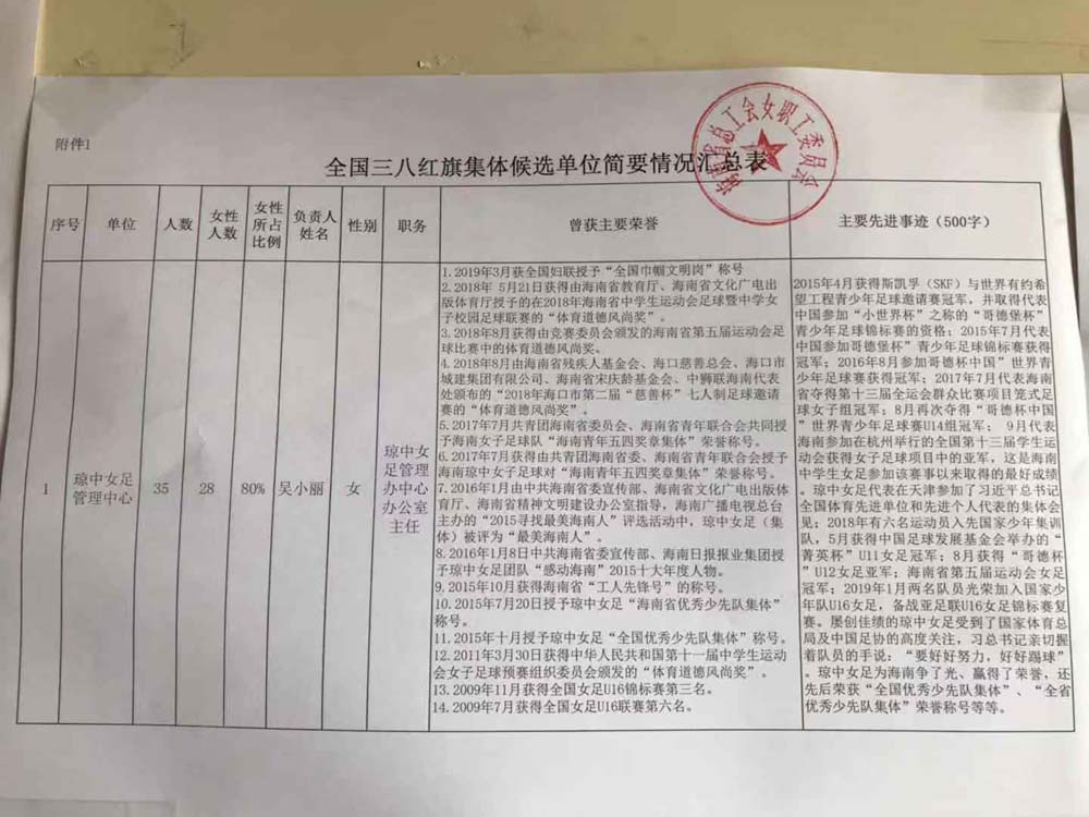 关于推荐2019年度全国三八红旗手(集体)候选人(单位)的公示