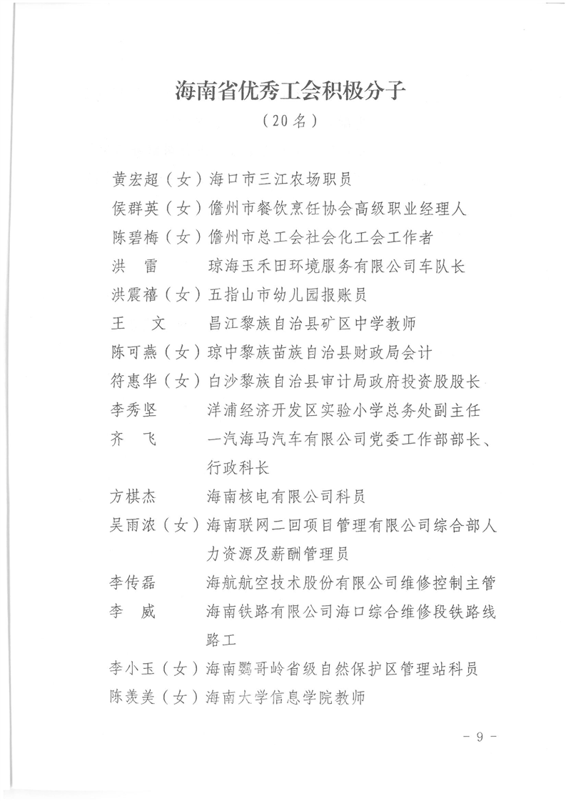 海南省总工会关于表彰海南省工会系统先进集体和先进个人的决定(琼工发〔2018〕17号)