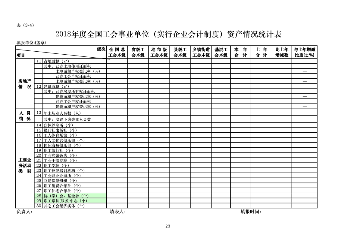 (二)企事业资产统计报表,包括《2018年度全国工会企事业资产情况统计汇总表》《2018年度全国工会企业资产情况统计表》《2018年度全国工会事业单位资产情况统计表》《2018年度全国工会社会团体资产情况统计表》和《2018年度全国工会