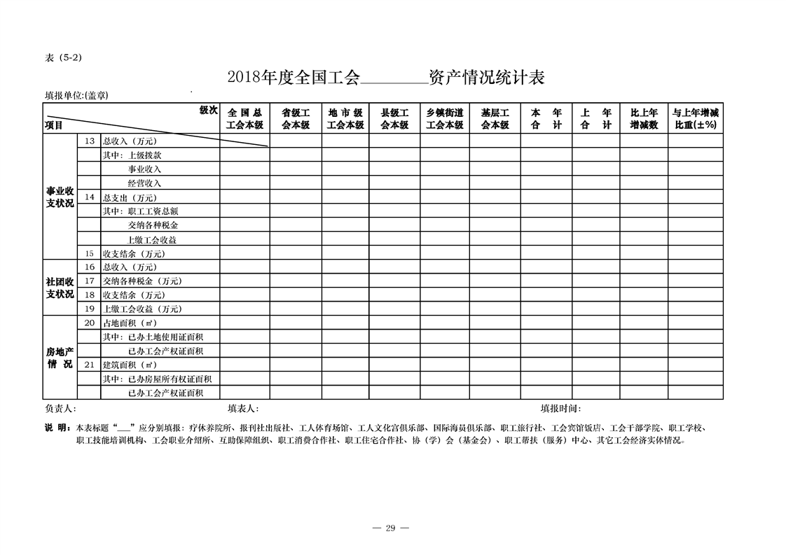 (一)行政性资产统计报表,包括《2018年度全国各级工会行政性资产统计表》。