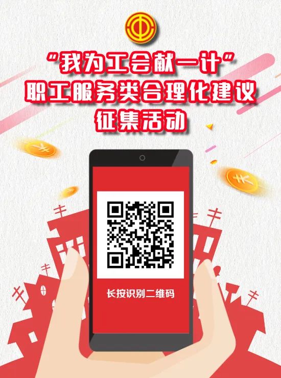 长按识别上图二维码或通过手机微信搜索“海南省总工会”、“海南省职工服务中心”微信公众号,关注成功后即可通过微信公众号菜单点击“我为工会献一计”链接参与活动线上填报。