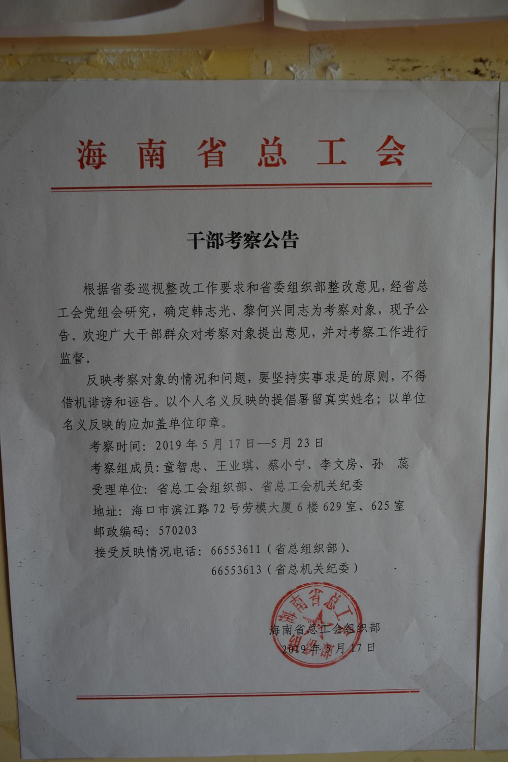 海南省总工会关于推荐第十六届全国职工职业道德建设候选标兵单位和个人的公示