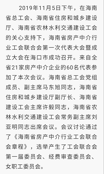 马东旭出席海南省房产中介行业工会联合会 第一次代表大会暨成立大会
