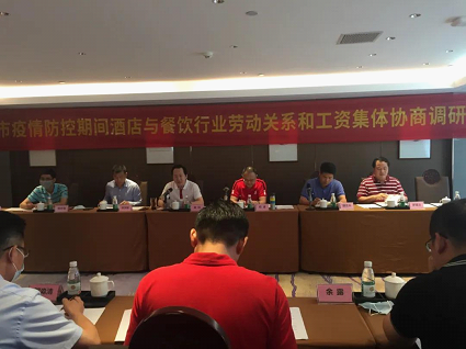 下午座谈会上,调研组听取了市总工会二级调研员罗建文代表市总工会汇报我市在疫情防控期间为促进酒店与餐饮行业复工复产所采取的措施和主要做法等情况。随后我市酒店协会、餐饮协会等代表分别作了汇报。调研组成员还和各企业与会代表开展交流探讨,大家纷纷结合各自工作实际,围绕复工复产后经营情况、如何减轻人力成本、员工工资如何发放等问题提出许多建议和意见。
