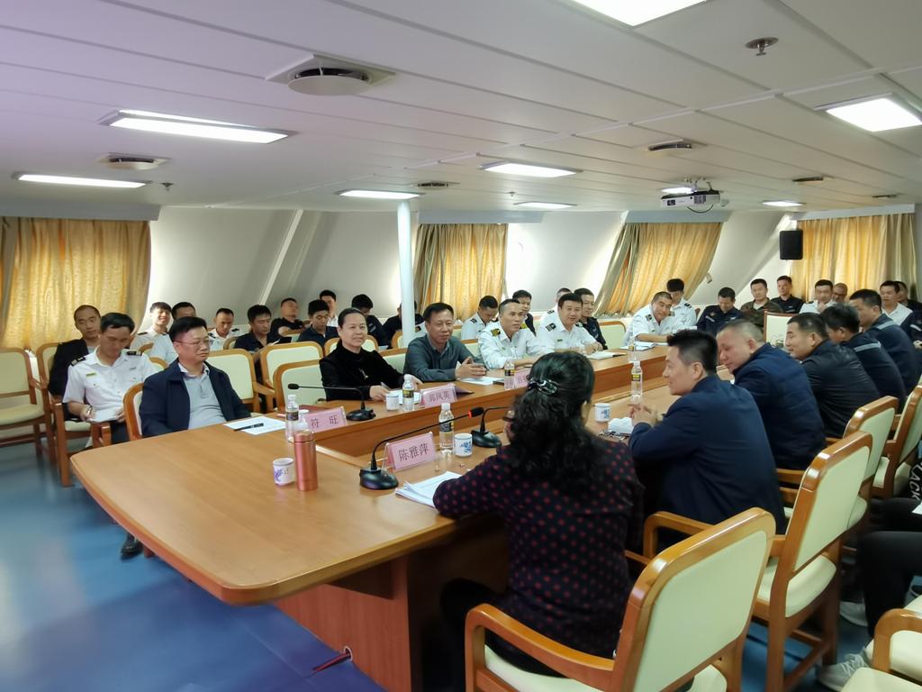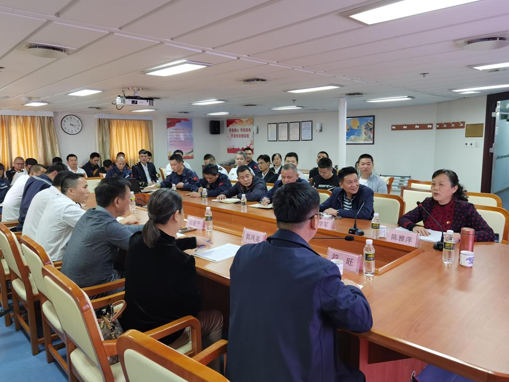 2020年12月3日下午,省总工会二级巡视员、女职工委员会主任陈雅萍到文昌市清澜口岸“三沙一号”综合补给船,为三沙市工会和三沙市船务局部分干部职工40余人宣讲党的十九届五中全会精神,三沙市人大常委会副主任、市总工会主席符旺同志主持会议。