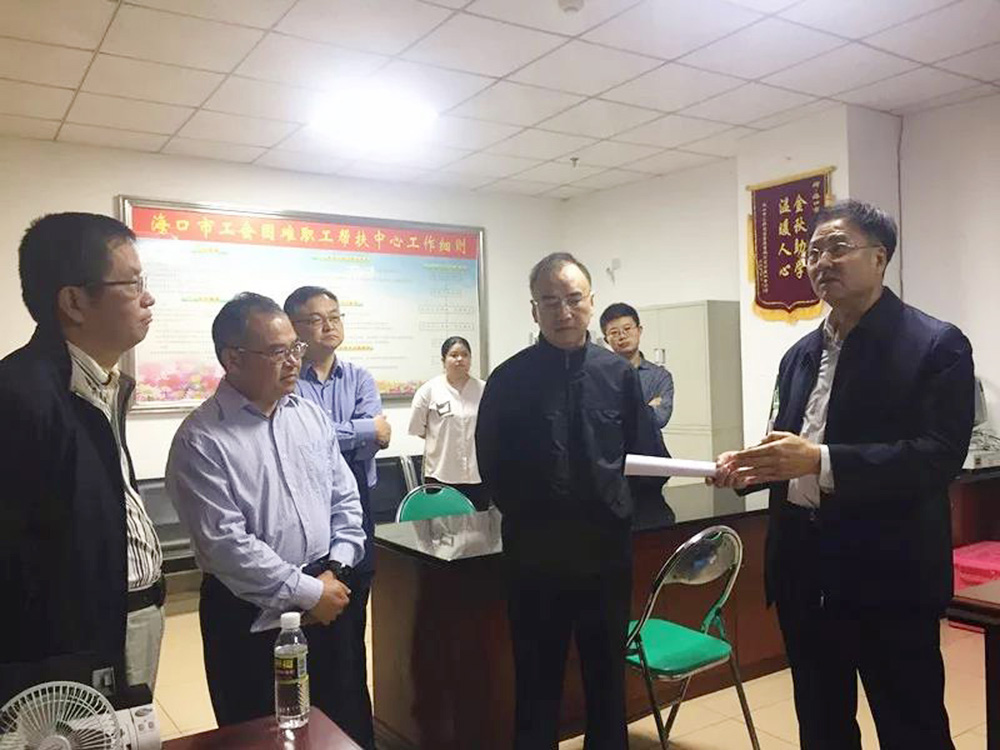 省总工会党组书记、常务副主席王全,海口市人大常委会副主任、市总工会主席盛林,海口市总工会常务副主席吴扬,省总工会办公室主任刘颖陪同调研。 |