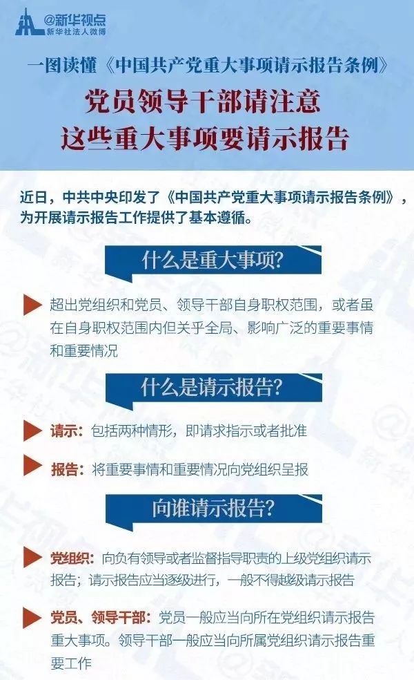 近日,中共中央印发了《中国共产党重大事项请示报告条例》,本条例自2019年1月31日起施行。