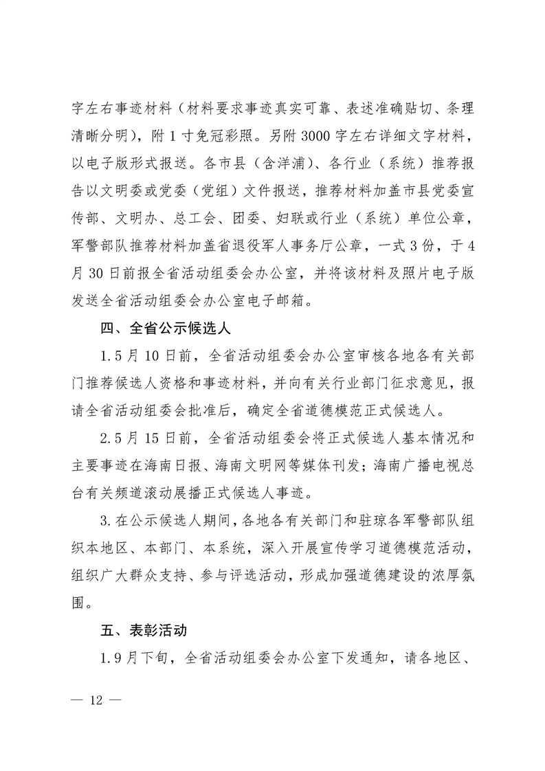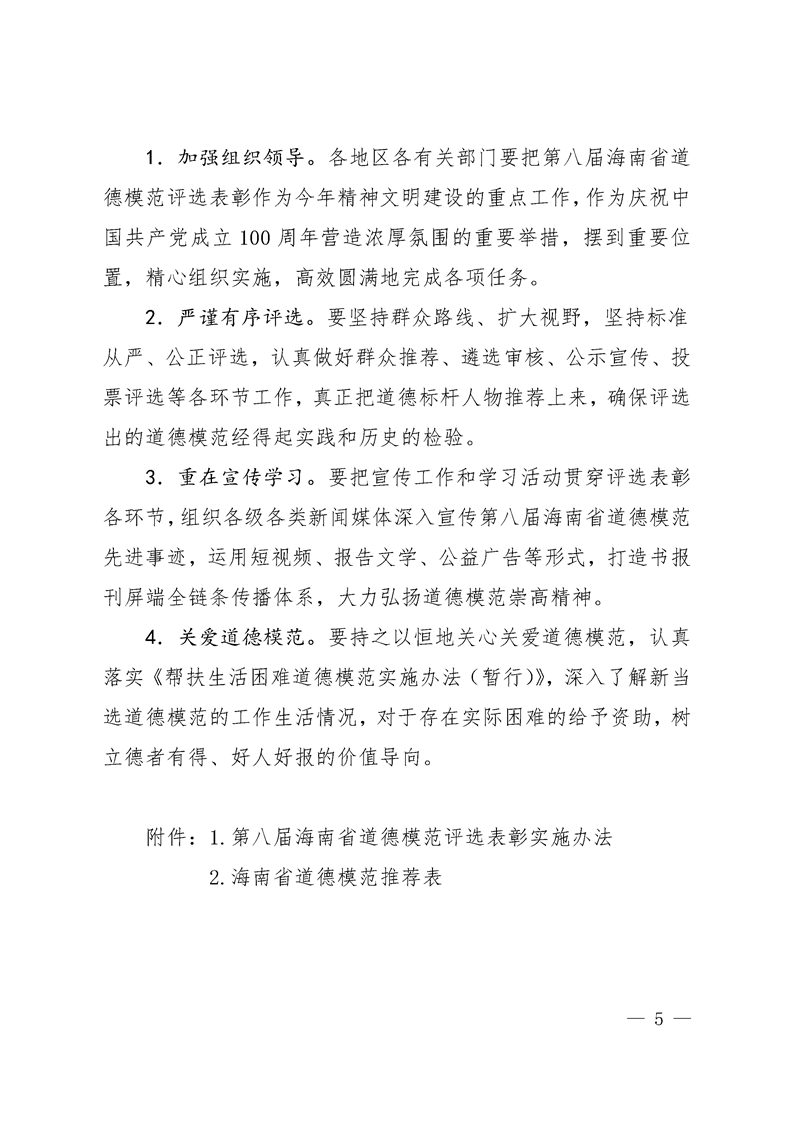 中共海南省委宣传部+海南省文明办关于评选表彰第八届海南省道德模范暨推荐第八届全国道德模范候选人的通知(琼文明办〔2021〕6号)