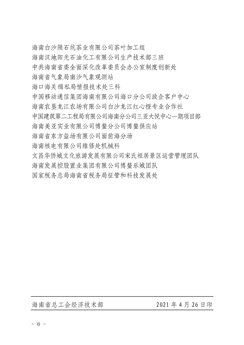 海南省总工会关于表彰2021年海南省五一劳动奖和海南省工人先锋号的决定(琼工发〔2021〕6号)