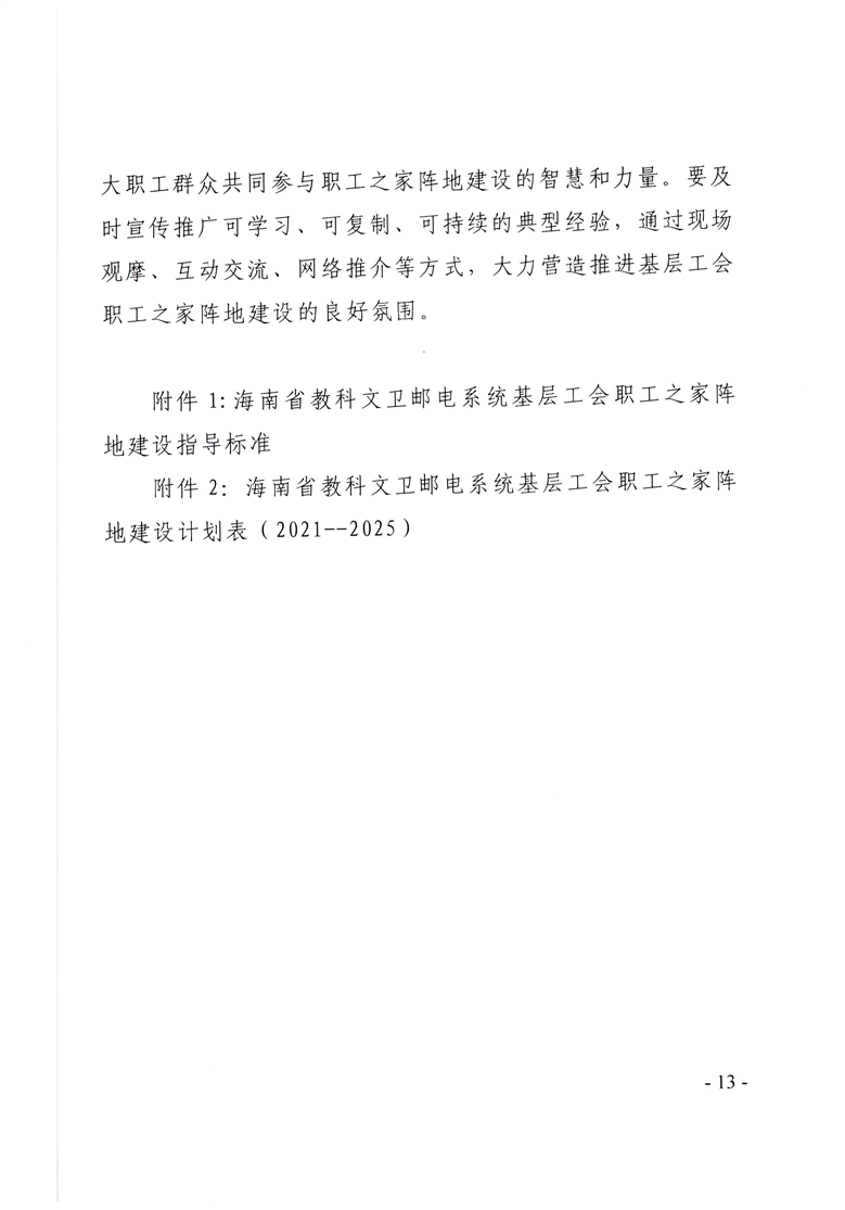 关于印发《海南省教科文卫邮电系统基层工会职工之家阵地建设工作规划(2021—2025年)》的通知(琼教科文卫邮电工字〔2021〕23号)
