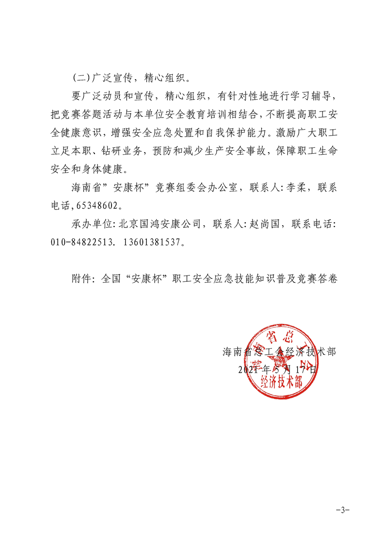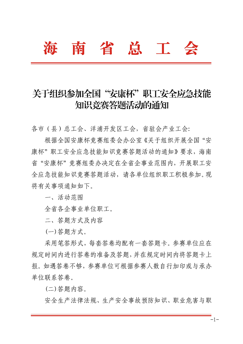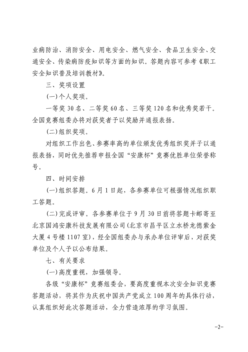 关于组织参加全国“安康杯”职工安全应急技能知识竞赛答题活动的通知