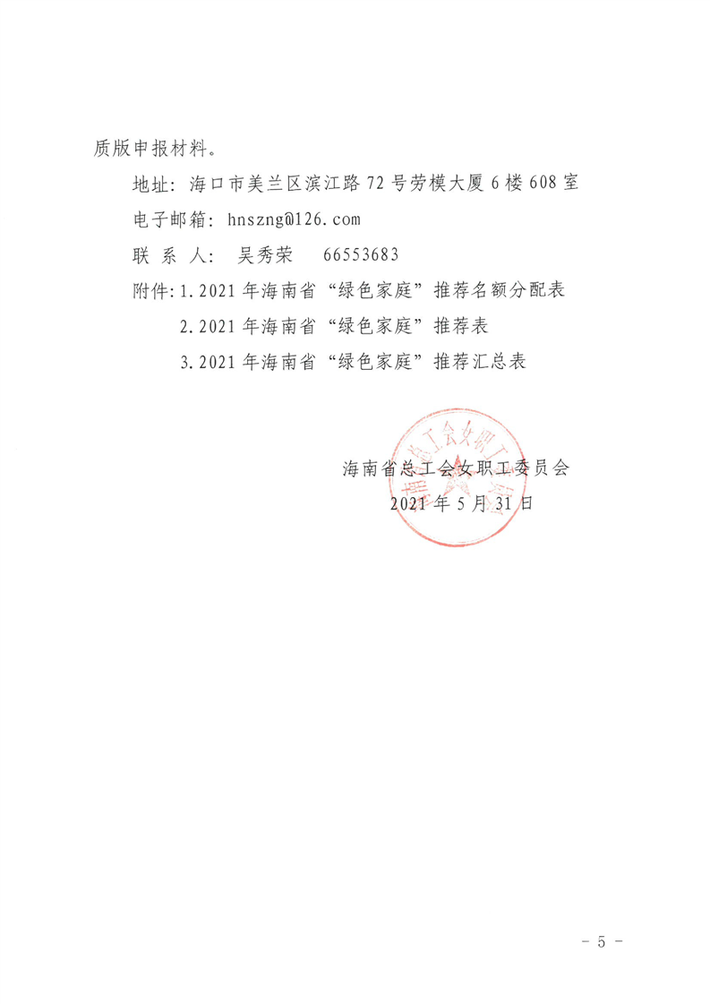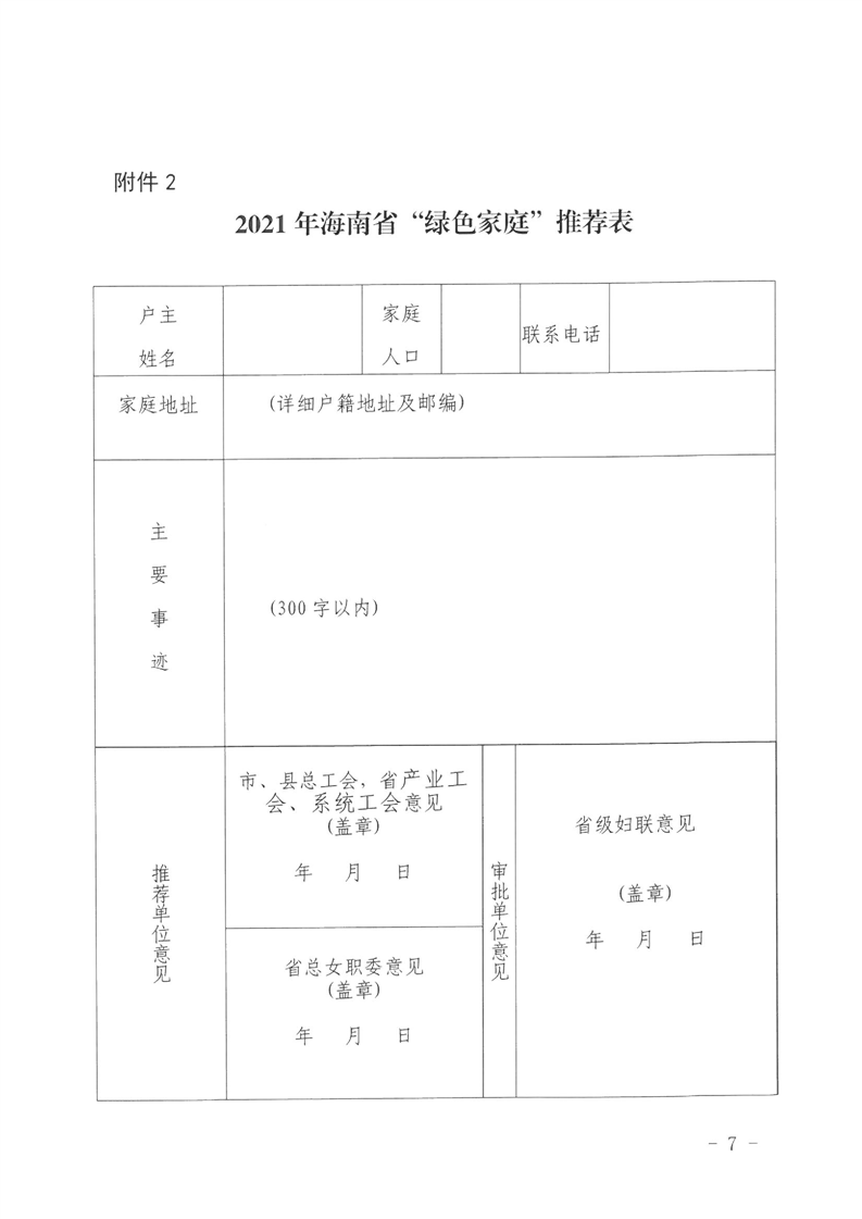 海南省总工会女职工委员会关于开展关于开展2021年海南省“绿色家庭”示范户推荐活动的通知(琼工女委〔2021〕9号)