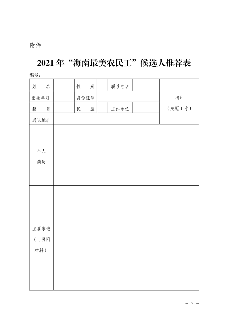 关于开展寻找2021年“海南最美农民工”活动的通知 (琼工联〔2021〕6号)