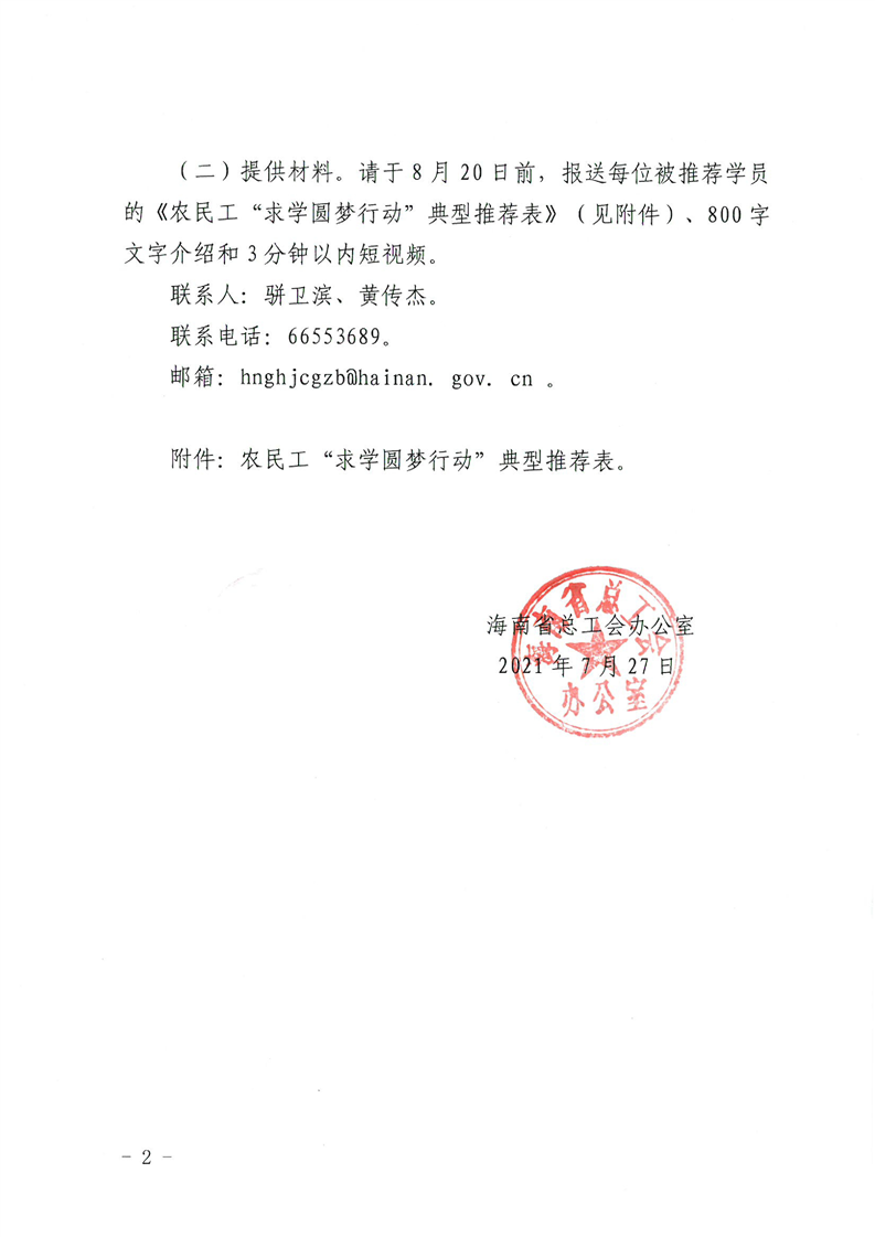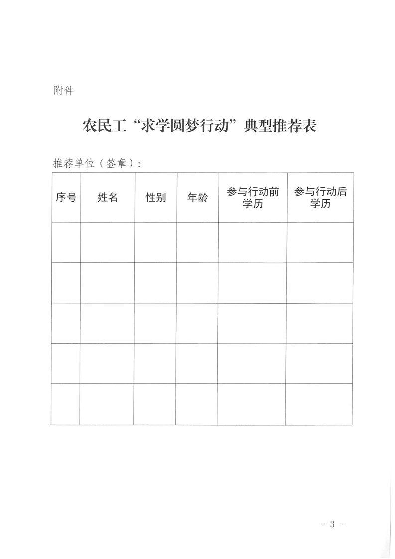 关于推荐农民工“求学圆梦行动”典型的通知
