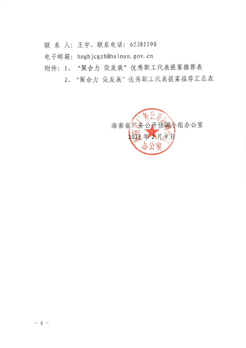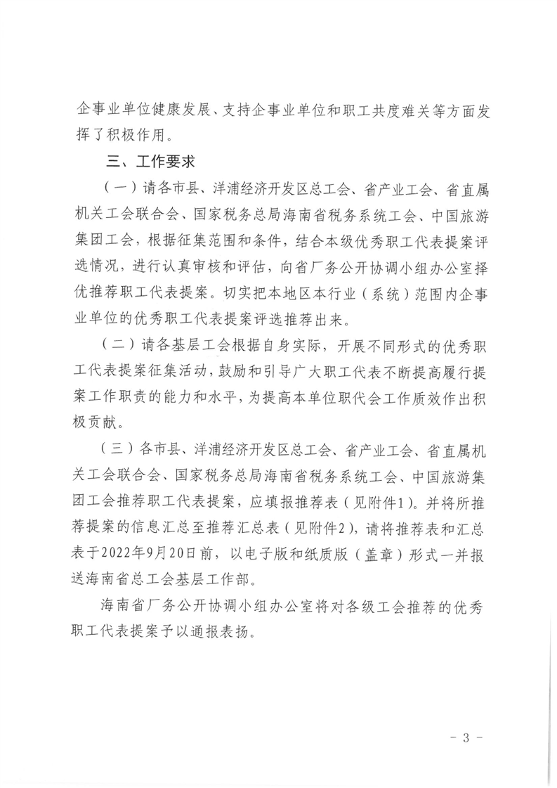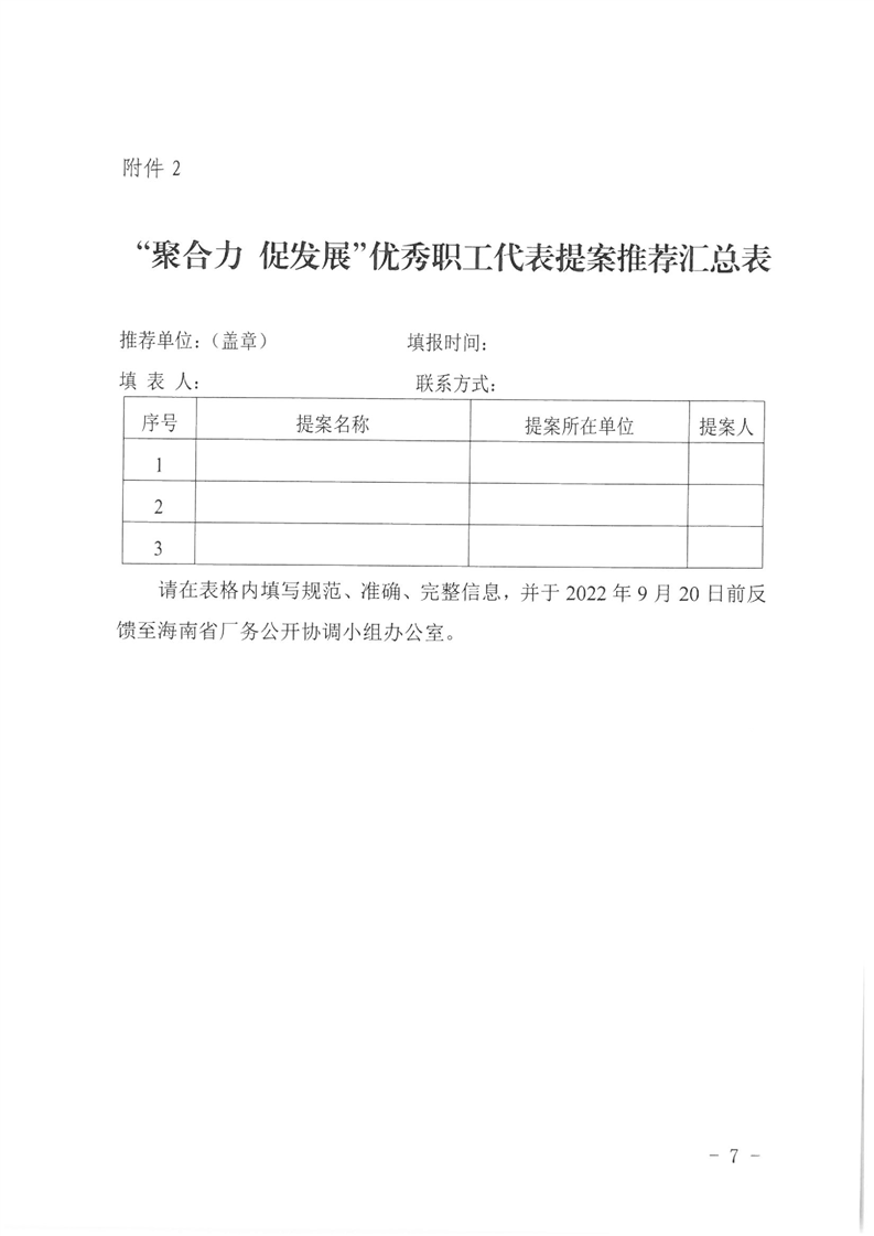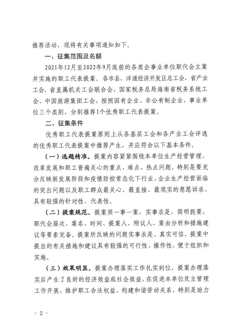 关于开展2022年度“聚合力 促发展”海南优秀职工代表提案征集推荐活动的通知(琼厂开组办〔2022〕1号)