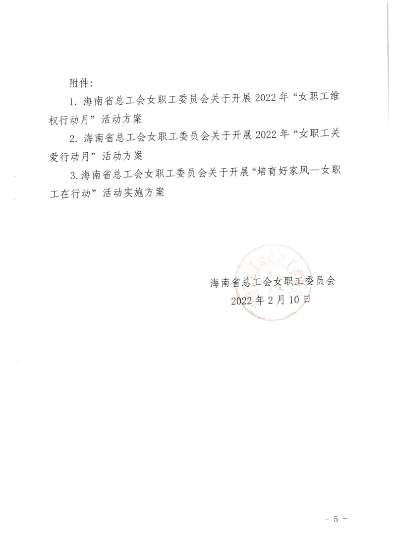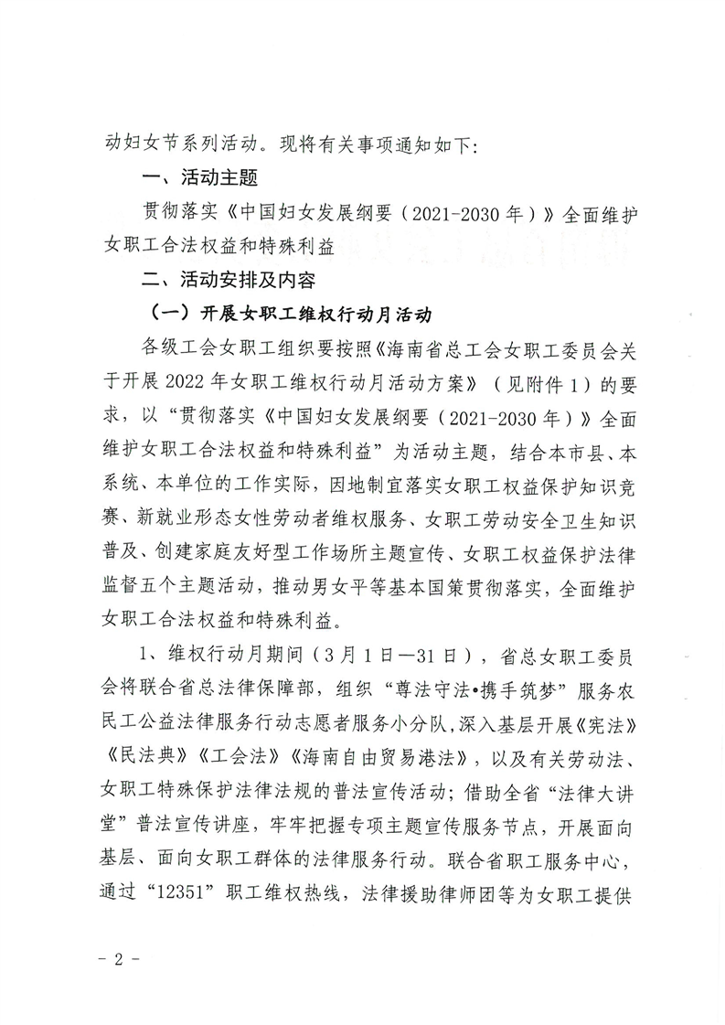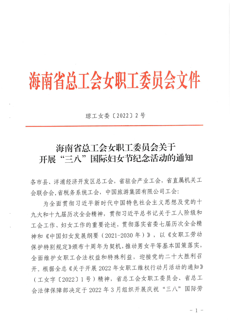 海南省总工会女职工委员会关于开展“三八”国际妇女节纪念活动的通知(琼女工委〔2022〕2号)
