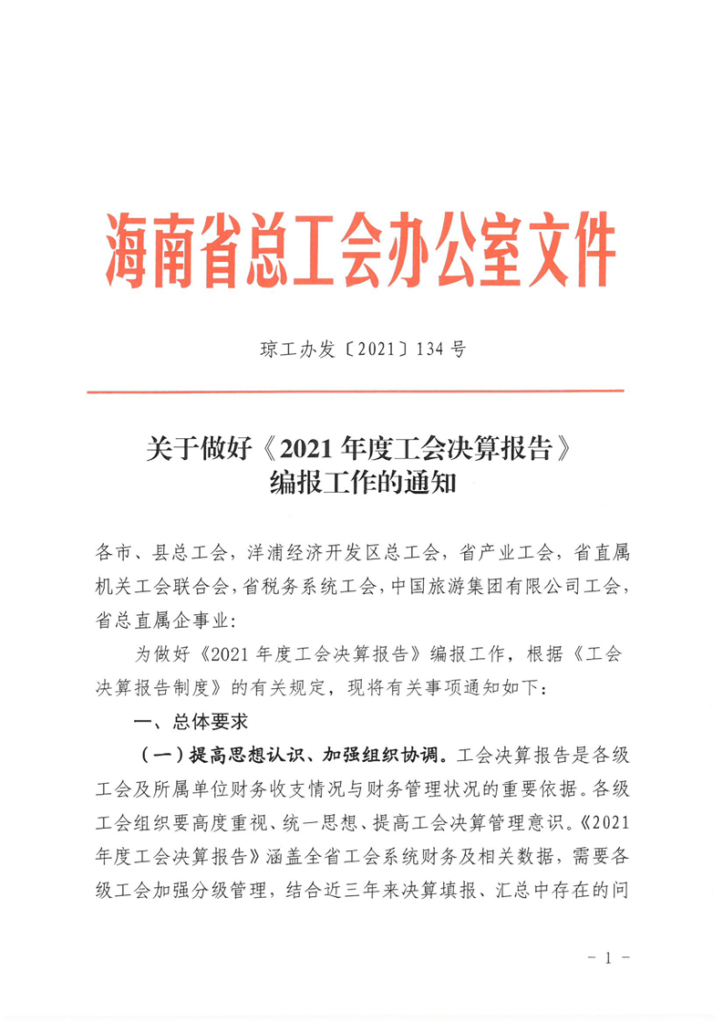 关于做好《2021年度工会决算报告》编报工作的通知(琼工办发〔2021〕134号)