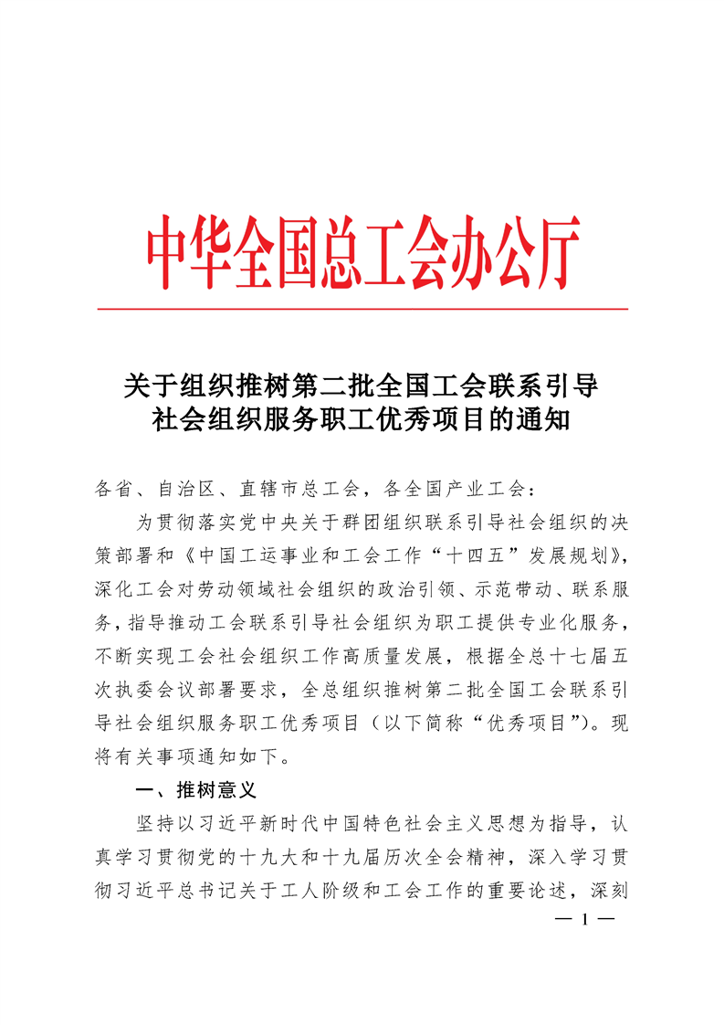 关于组织推树第二批全国工会联系引导社会组织服务职工优秀项目的通知