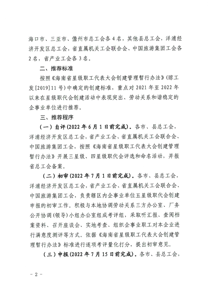 关于做好海南省星级职代会推荐评选工作的通知(琼工办发〔2022〕45号)