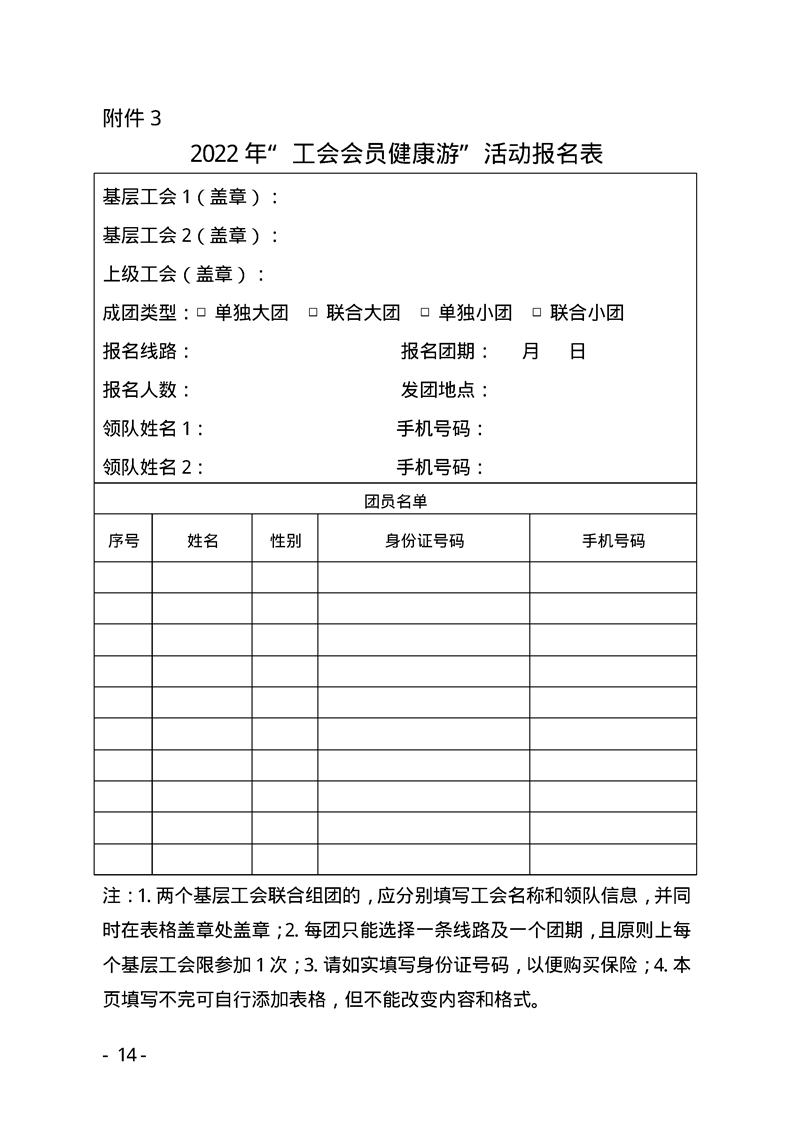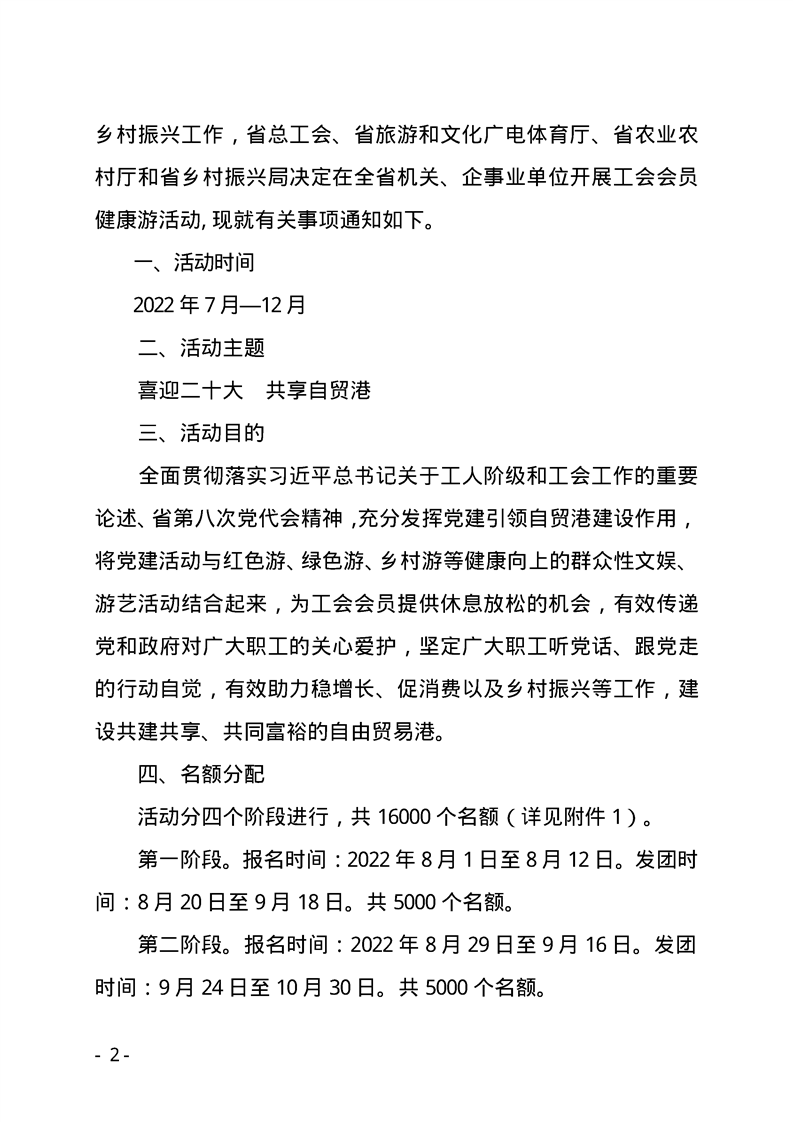 关于开展2022年“工会会员健康游”活动的通知(琼工联〔2022〕14号)