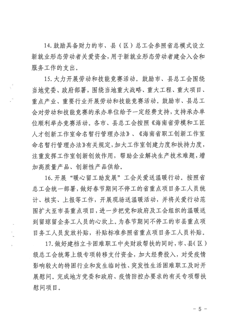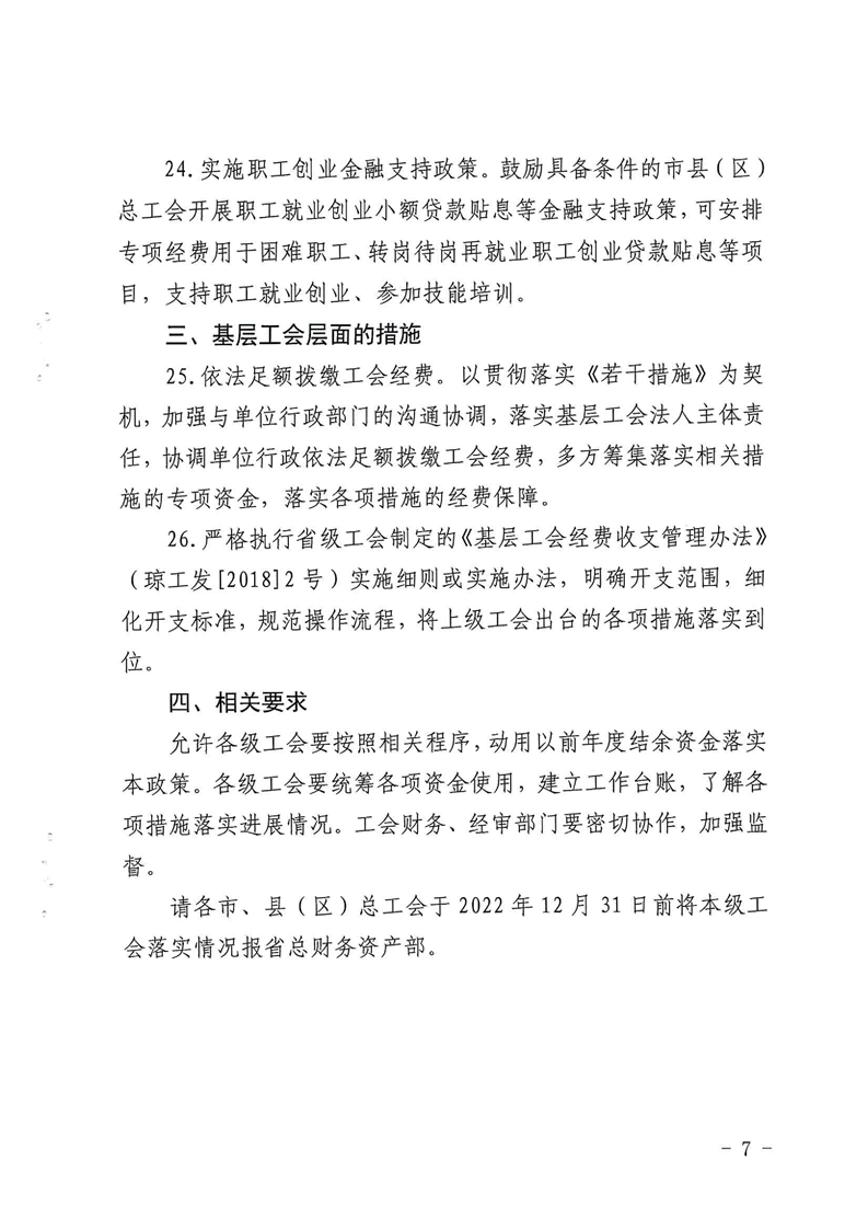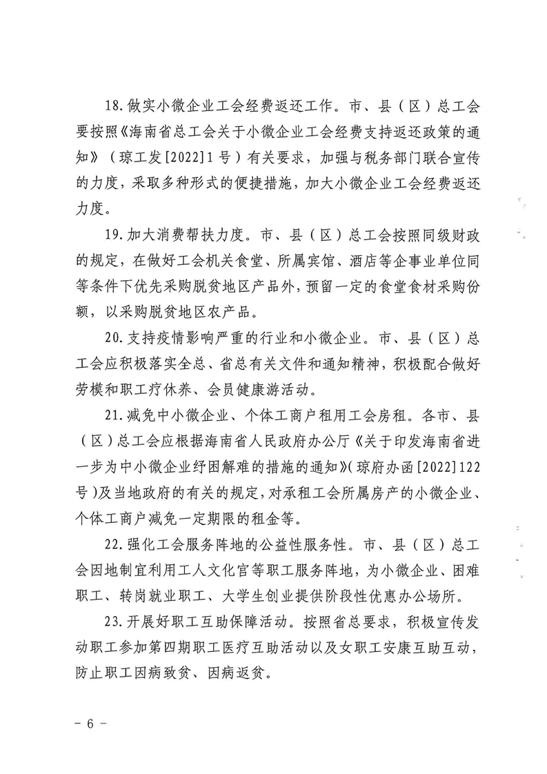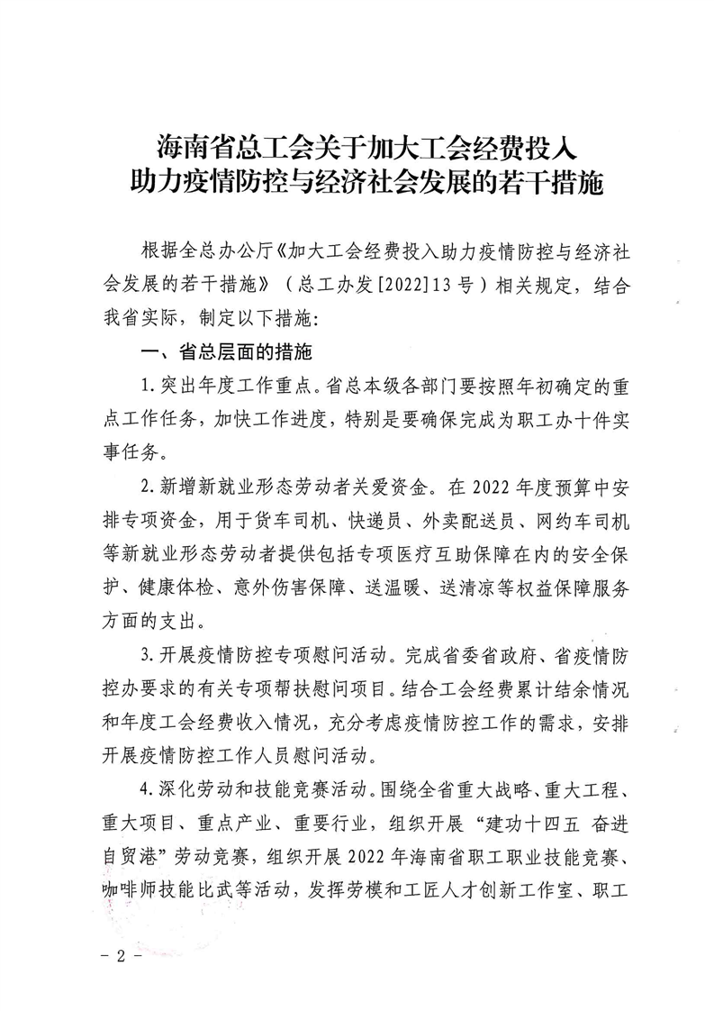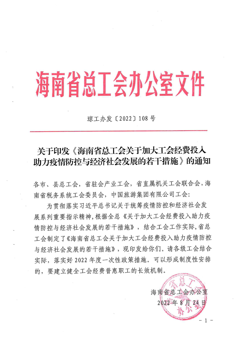 关于印发《海南省总工会关于加大工会经费投入助力疫情防控与经济社会发展的若干措施》的通知(琼工办发〔2022〕108号 )