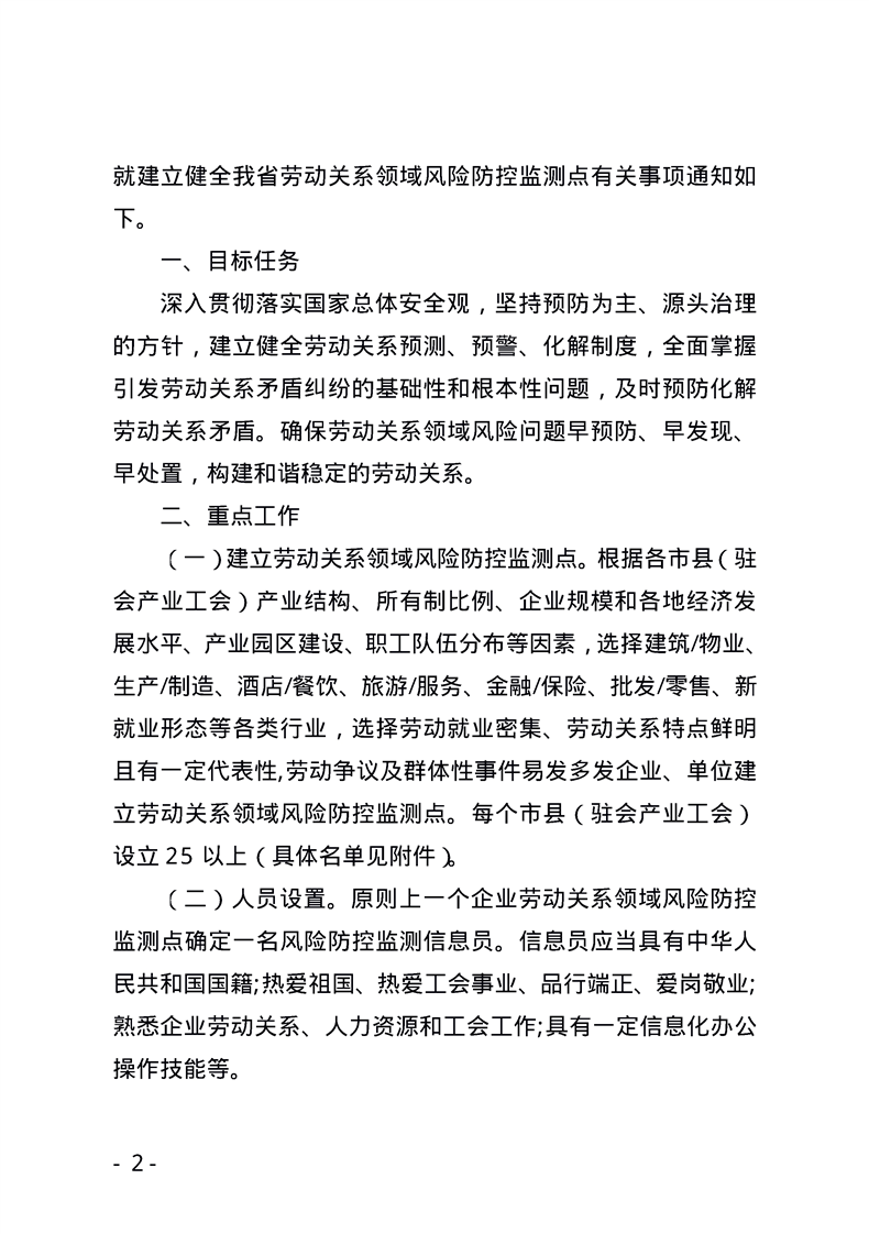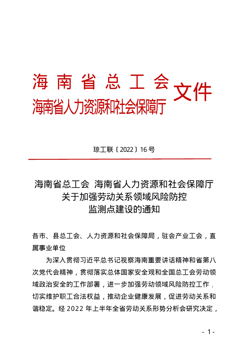 关于加强劳动关系领域风险防控监测点建设工作的通知(琼工联〔2022〕16号)