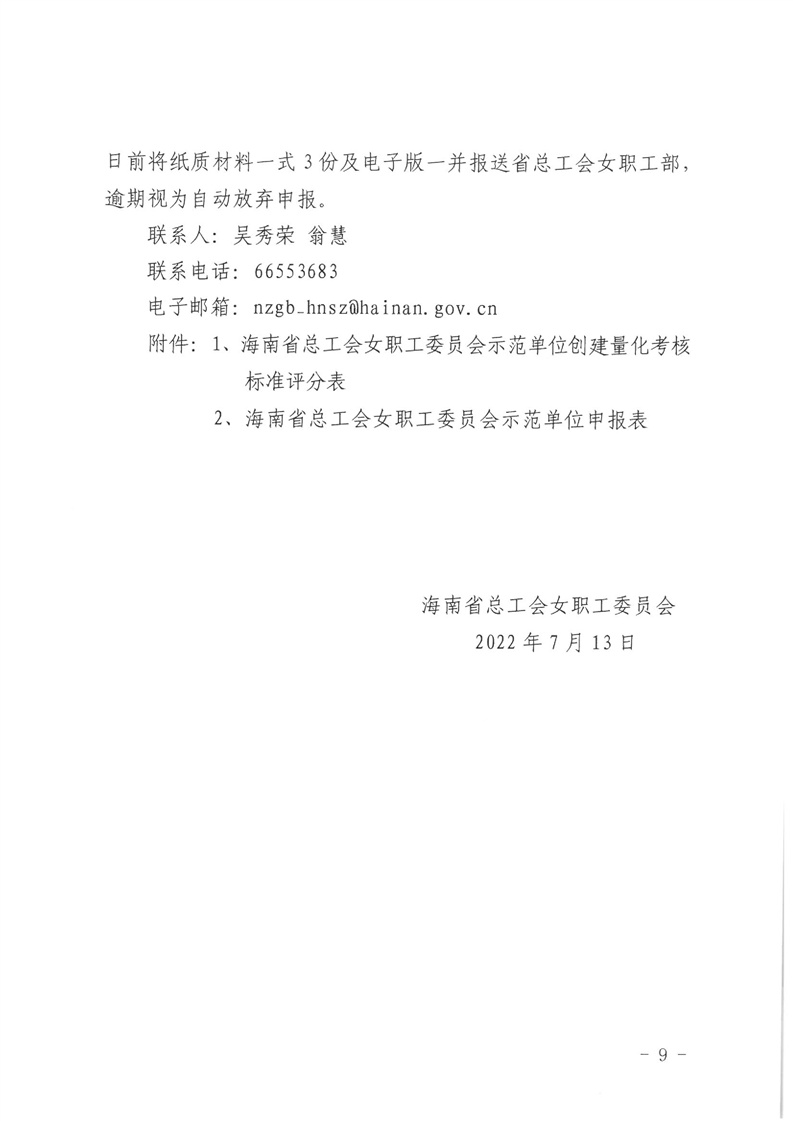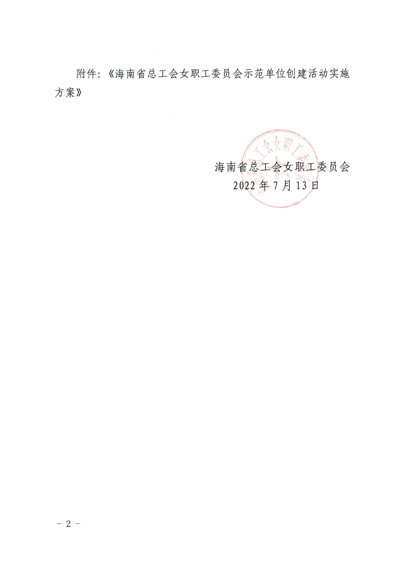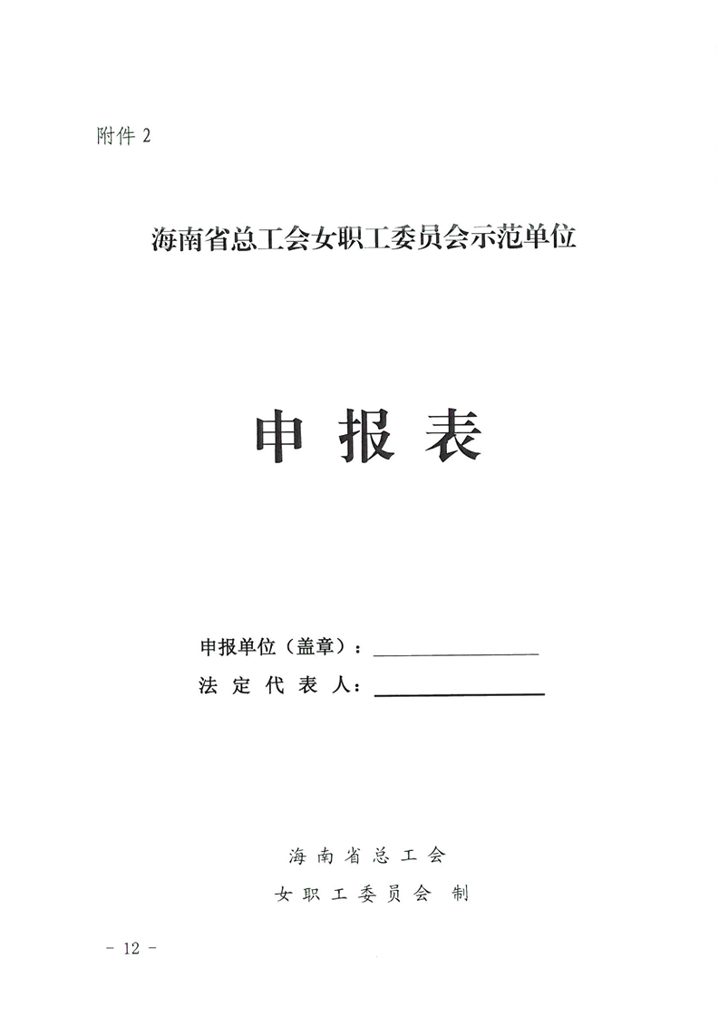 关于开展海南省女职工委员会示范单位创建活动的通知 (琼工女委〔2022〕12号 )