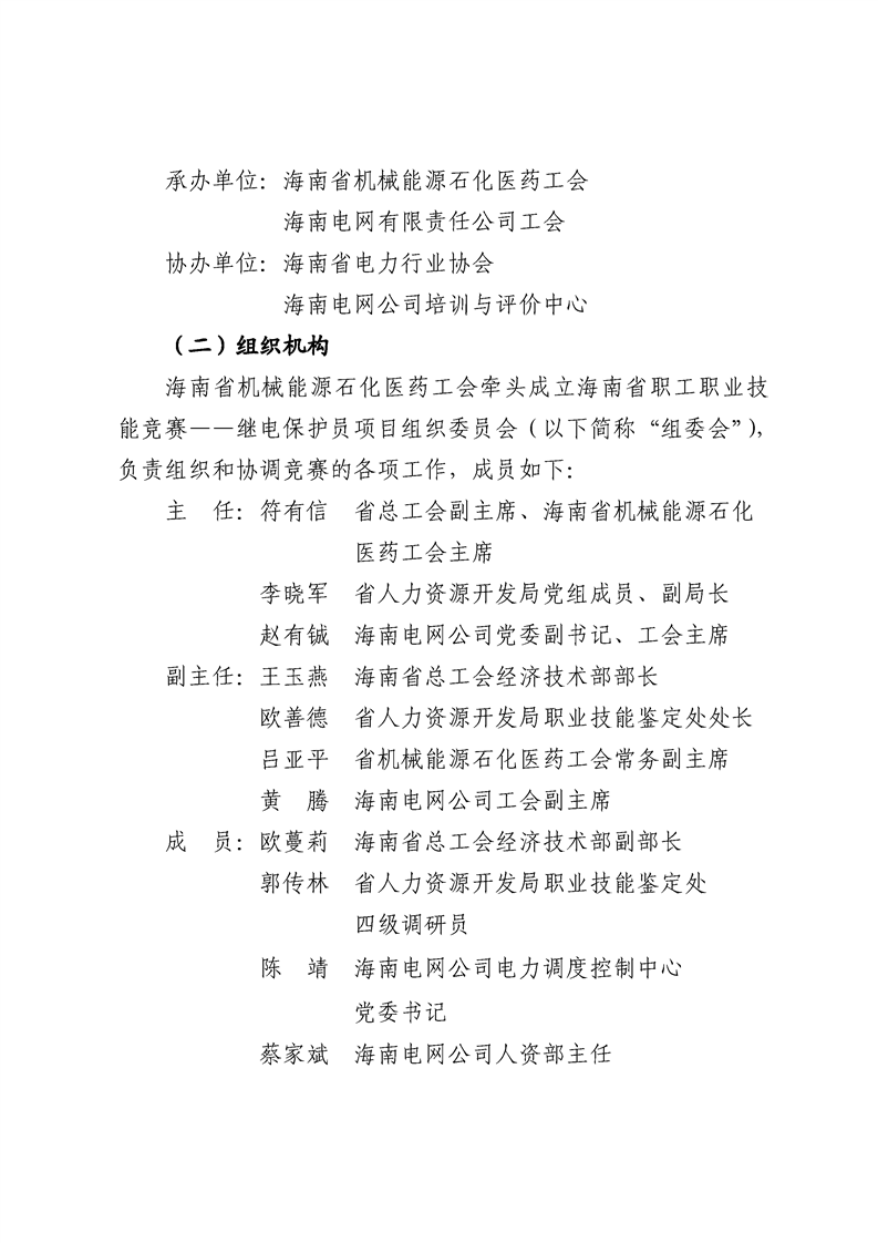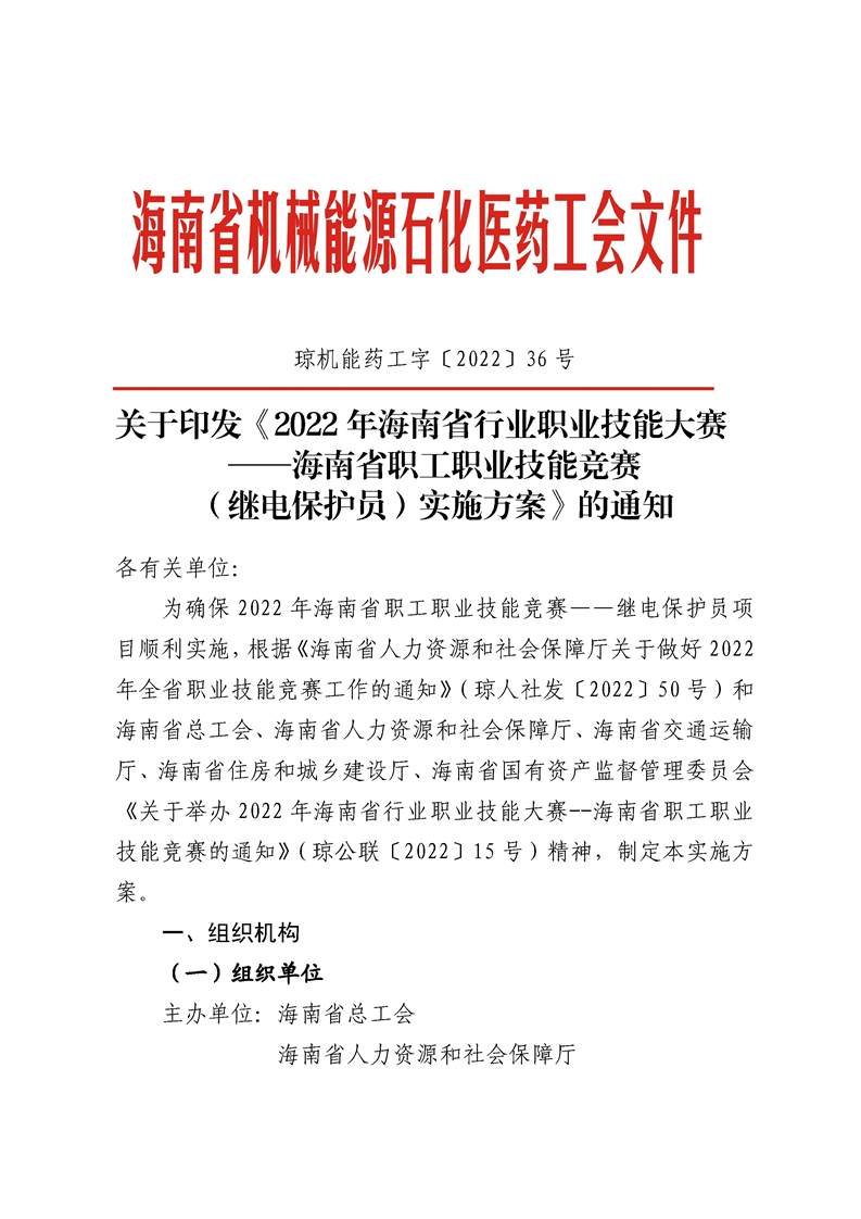 关于印发《2022年海南省行业职业技能大赛——海南省职工职业技能竞赛(继电保护员)实施方案》的通知(琼机能药工字〔2022〕36 号)